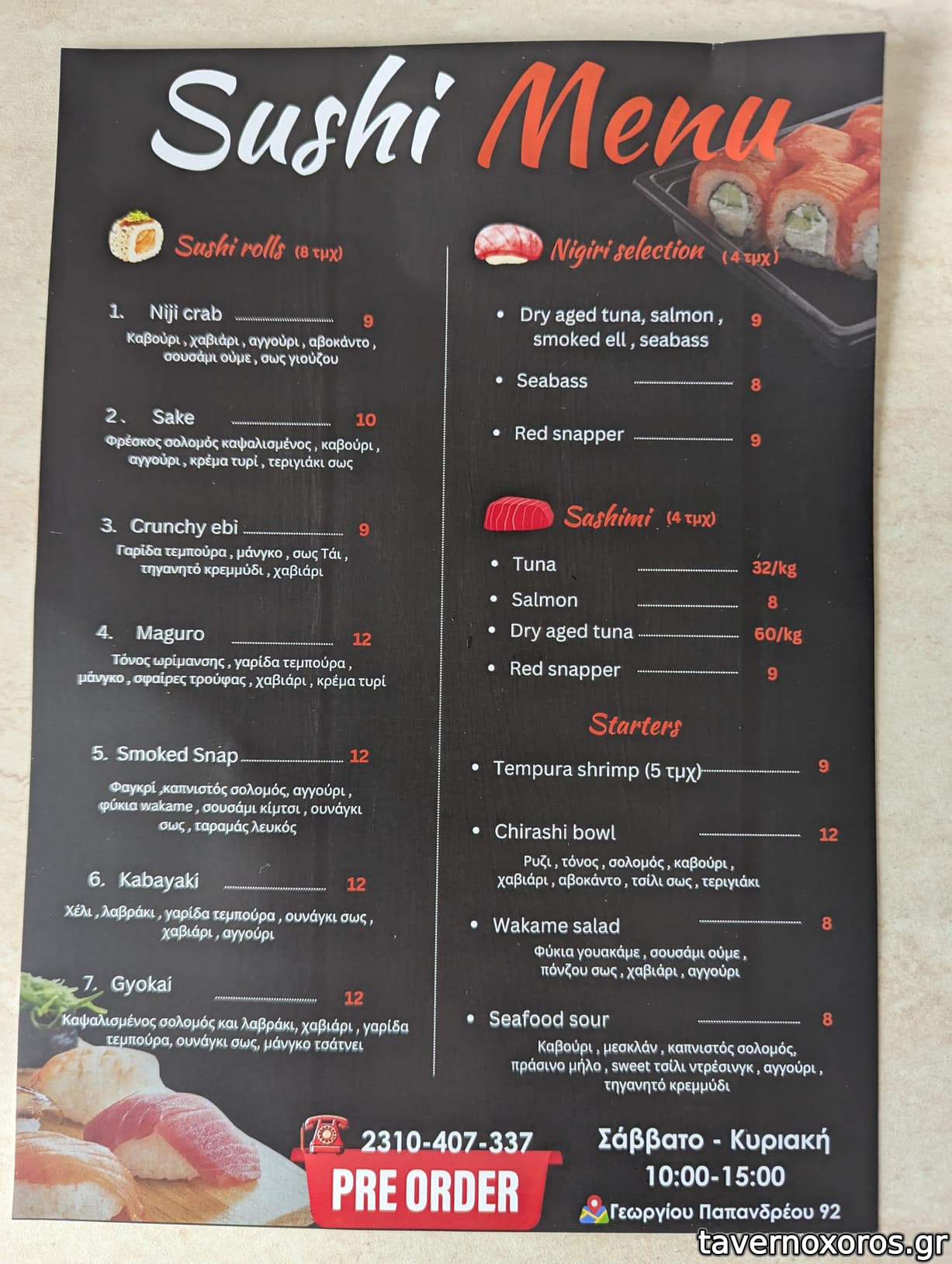 Ιχθυοπωλείο που από το 2024 πρόσθεσε sushi κάθε ΣΚ στις 10:00-15:00.