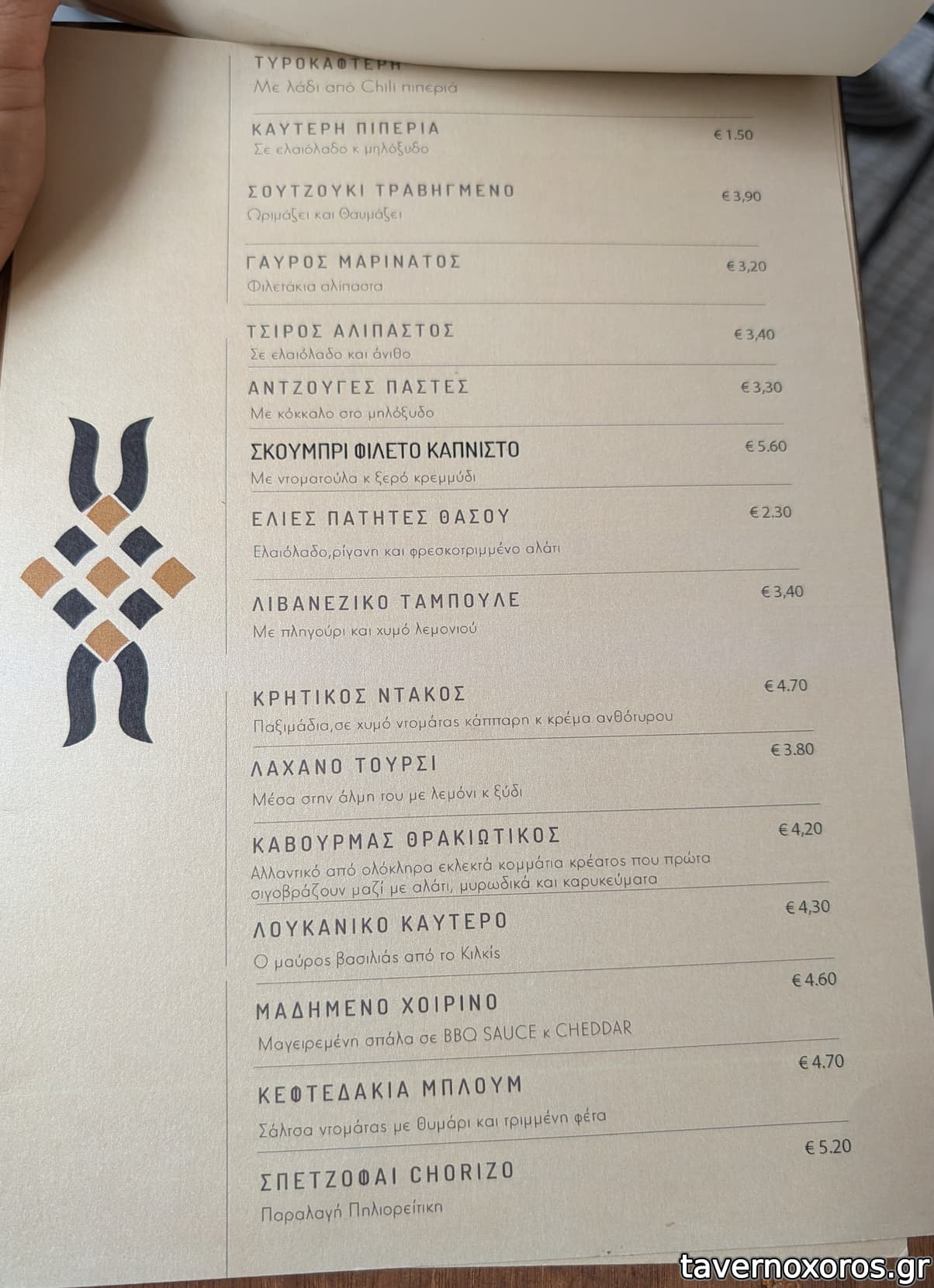 - Μικρός κατάλογος με μεζεδάκια, με μερικές τσαχπινιές για διαφοροποίηση. Κυρίως κρεατικά, δυστυχώς δεν έχει ψαράκι. Αλλά αυτό είναι γενικό φαινόμενο στην Αλεξανδρούπολη που έχει ελάχιστα μεζεδοπωλεία με θαλασσινά.
