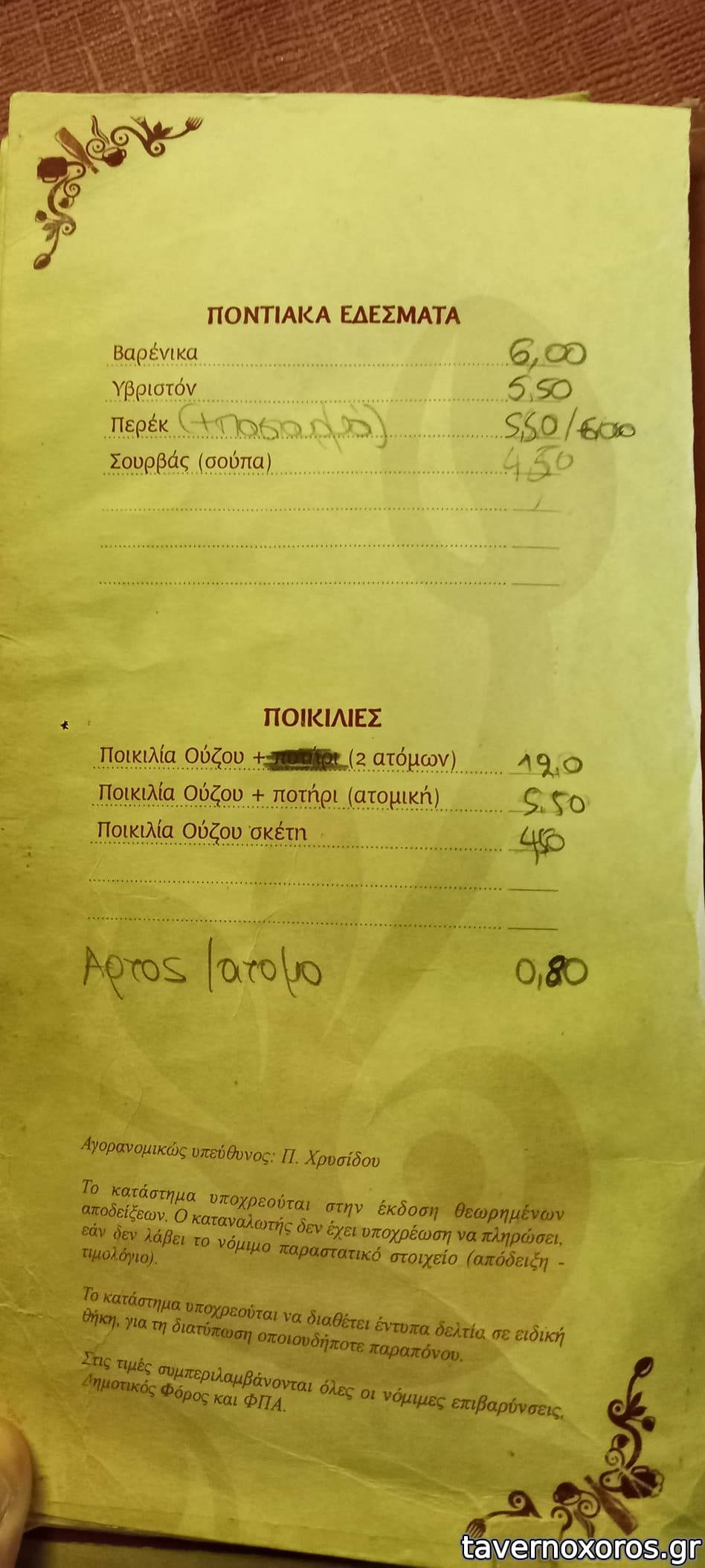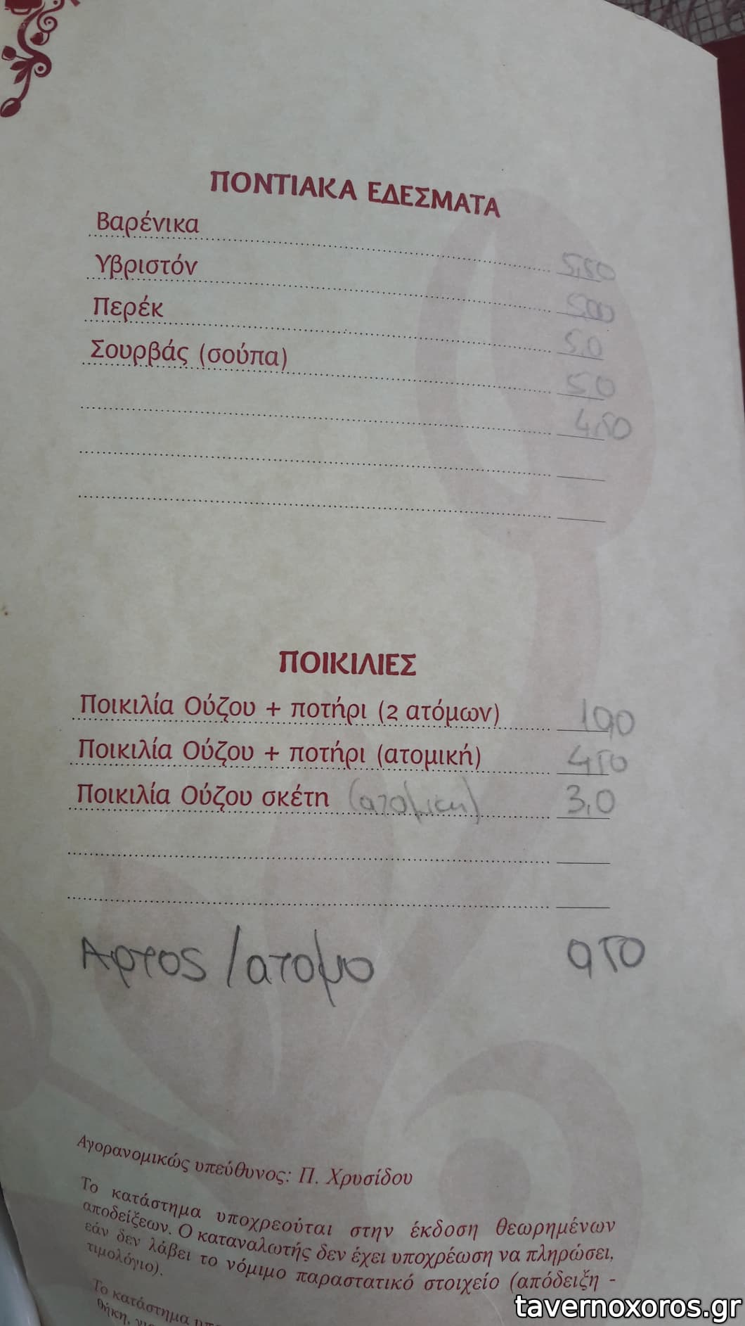 Τιμές καλές και μερίδες τίμιες προς μεγάλες. Απόδειξη κανονικά.