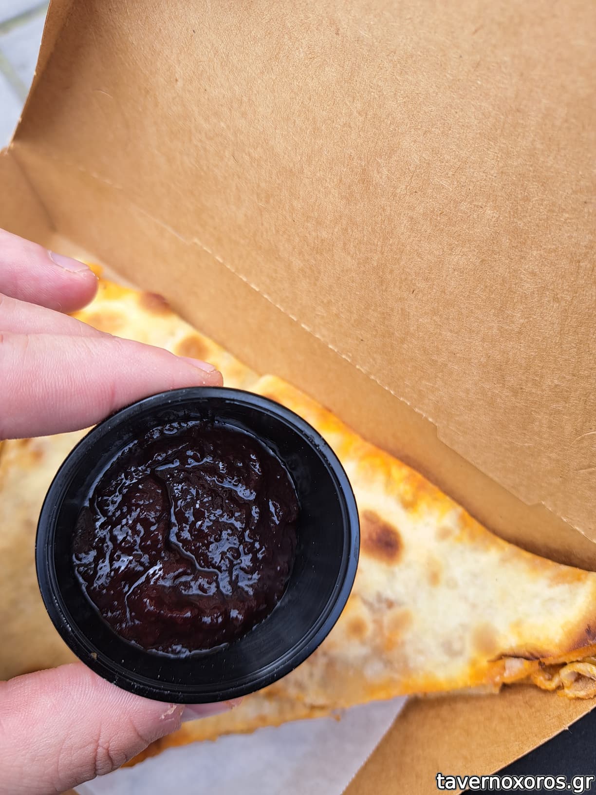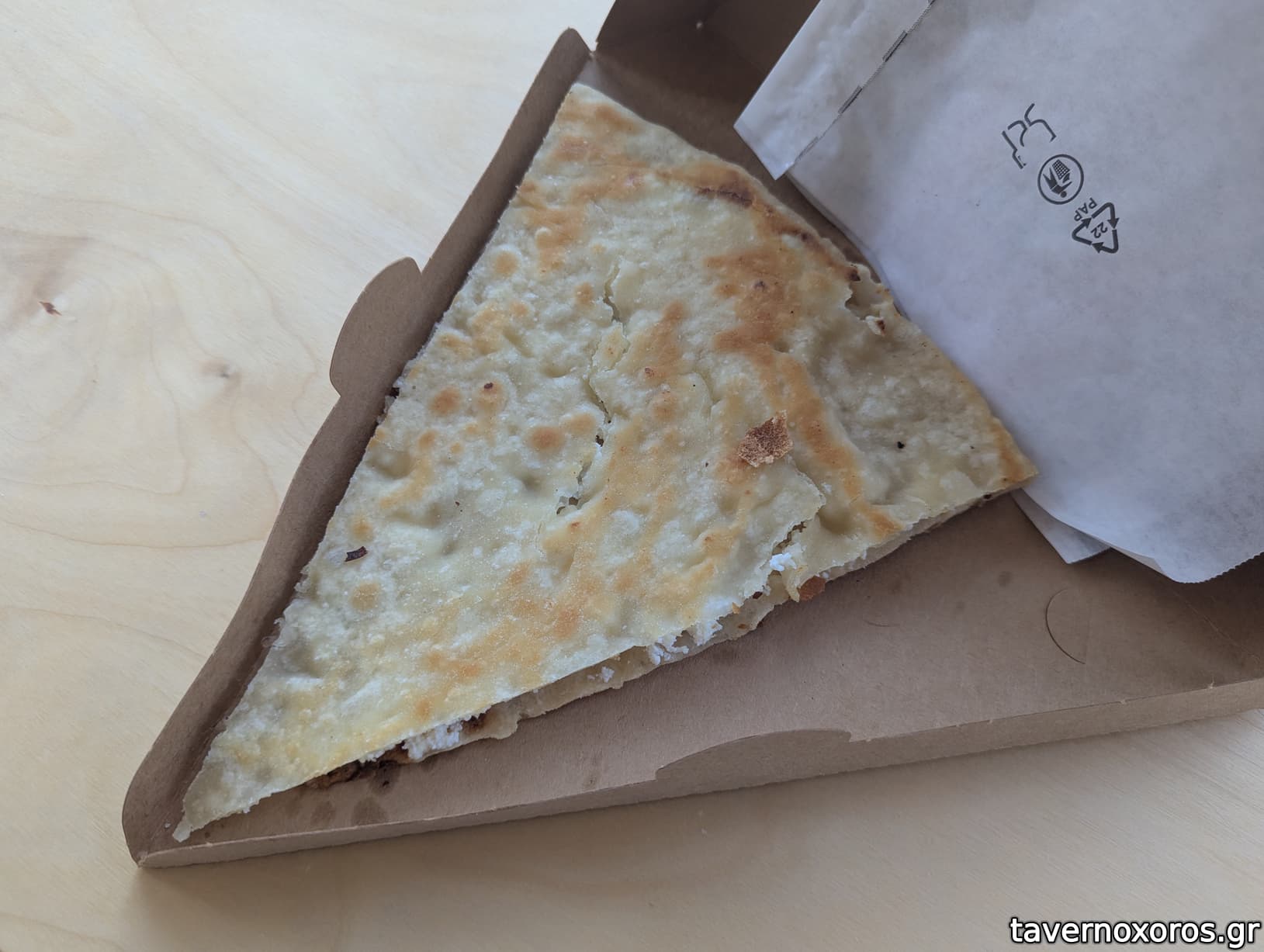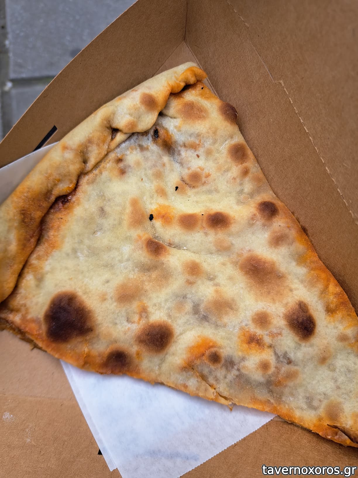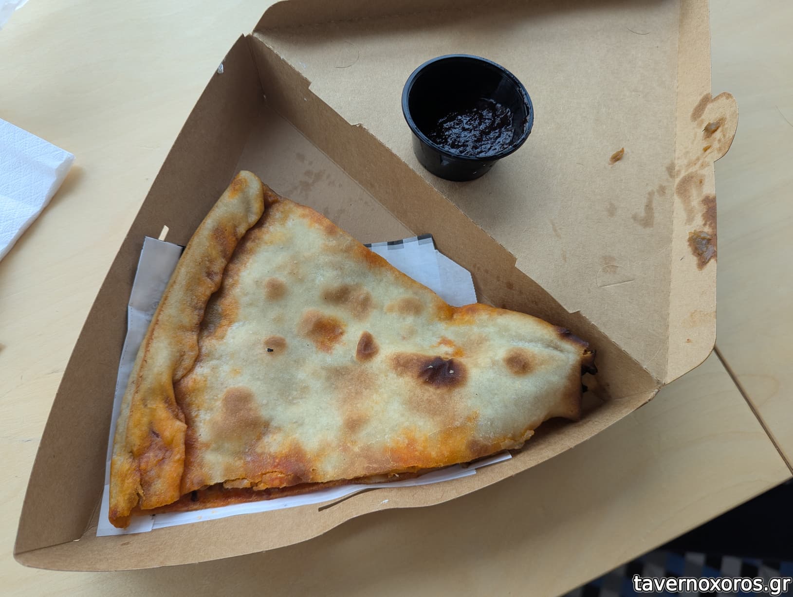 Ζύμη συμπαγής, ξεφεύγει από το κλασικό φύλλο που ξέρουμε. Γέμιση αρκετή, αν το έφτιαχνα στο σπίτι μου, θα έβαζα και λίγο παραπάνω.