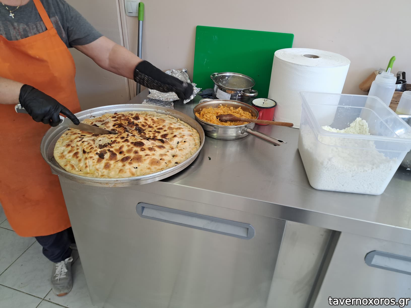 Ευτυχώς, όπως με ενημέρωσε η ευγενικότατη κυρία, κάποιος παρήγγειλε ένα ταψί με τυρί, οπότε αυτή ήταν φρεσκοβγαλμένη.