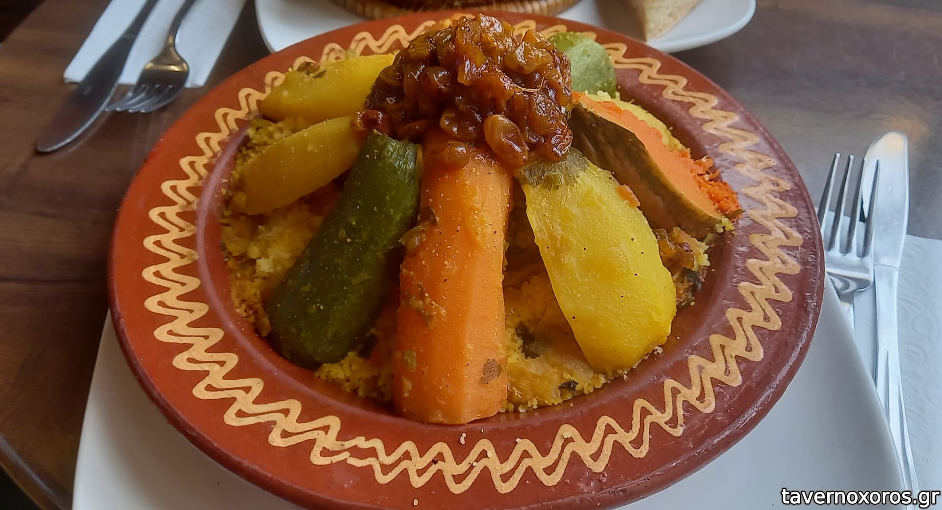Δοκιμάστηκαν κεφτεδάκια καμήλας με σάλτσα ντομάτας και κους κους με αρνί και ήταν αμφότερα αρκετά νόστιμα και οι ποσότητες καλές. Τιμές τουριστικές, 9.