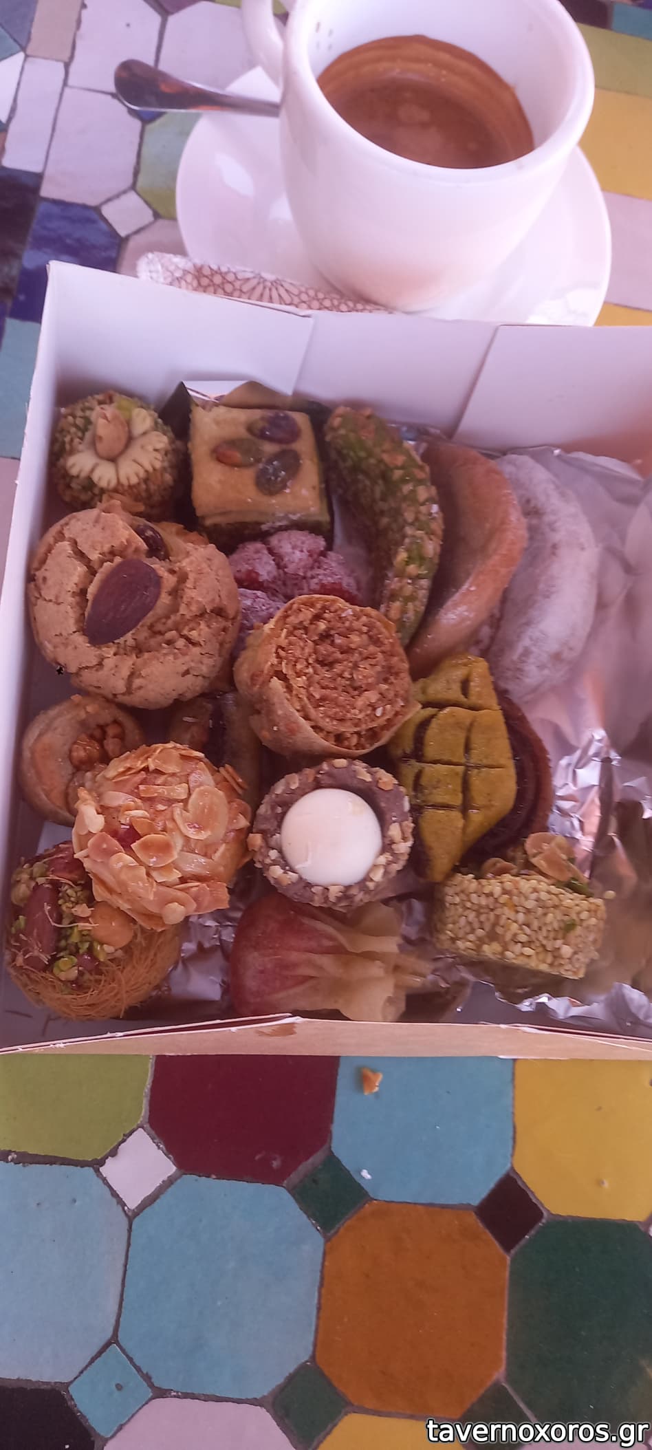 Εμφανισιακά ήταν εξαιρετικά αλλά γευστικά παρόλη την φαινομενική ποικιλία σχεδόν όλα είχαν αποκλειστικά γεύση αμυγδαλωτού που προσωπικά μου αρέσει πάρα πολύ αλλά περίμενα διαφορετικές γεύσεις. Μαζί με 2 τσάι μέντας μας βγήκε περίπου 25€. Νιεχμ