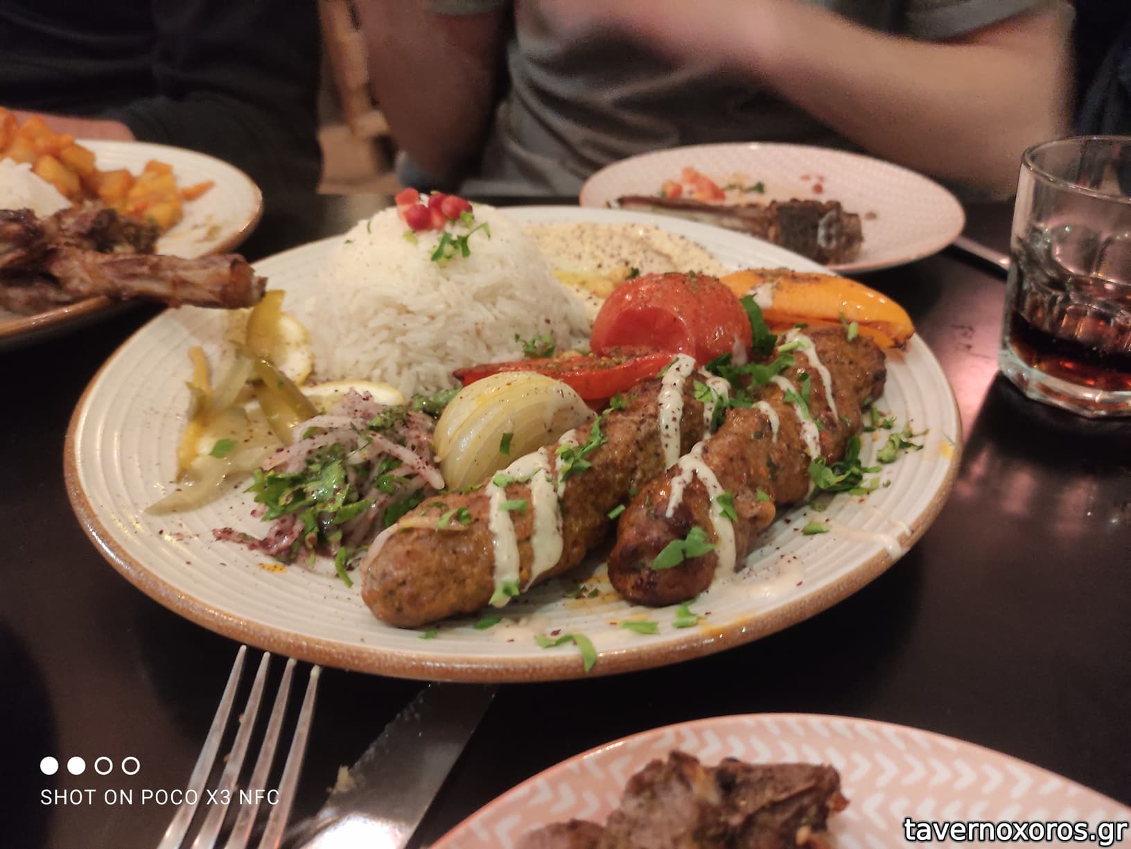 Σέρβις ευγενικό και αποτελεσματικό. Μουσική αραβική σε καλή ένταση. Λουκάνικα πολύ καλά, κουμπε πολύ καλά, shawarma κοτόπουλο οκ, shawarma μοσχάρι οκ, παιδάκια καλά. 2 μπύρες, 2 αναψυκτικά=110 ευρώ.