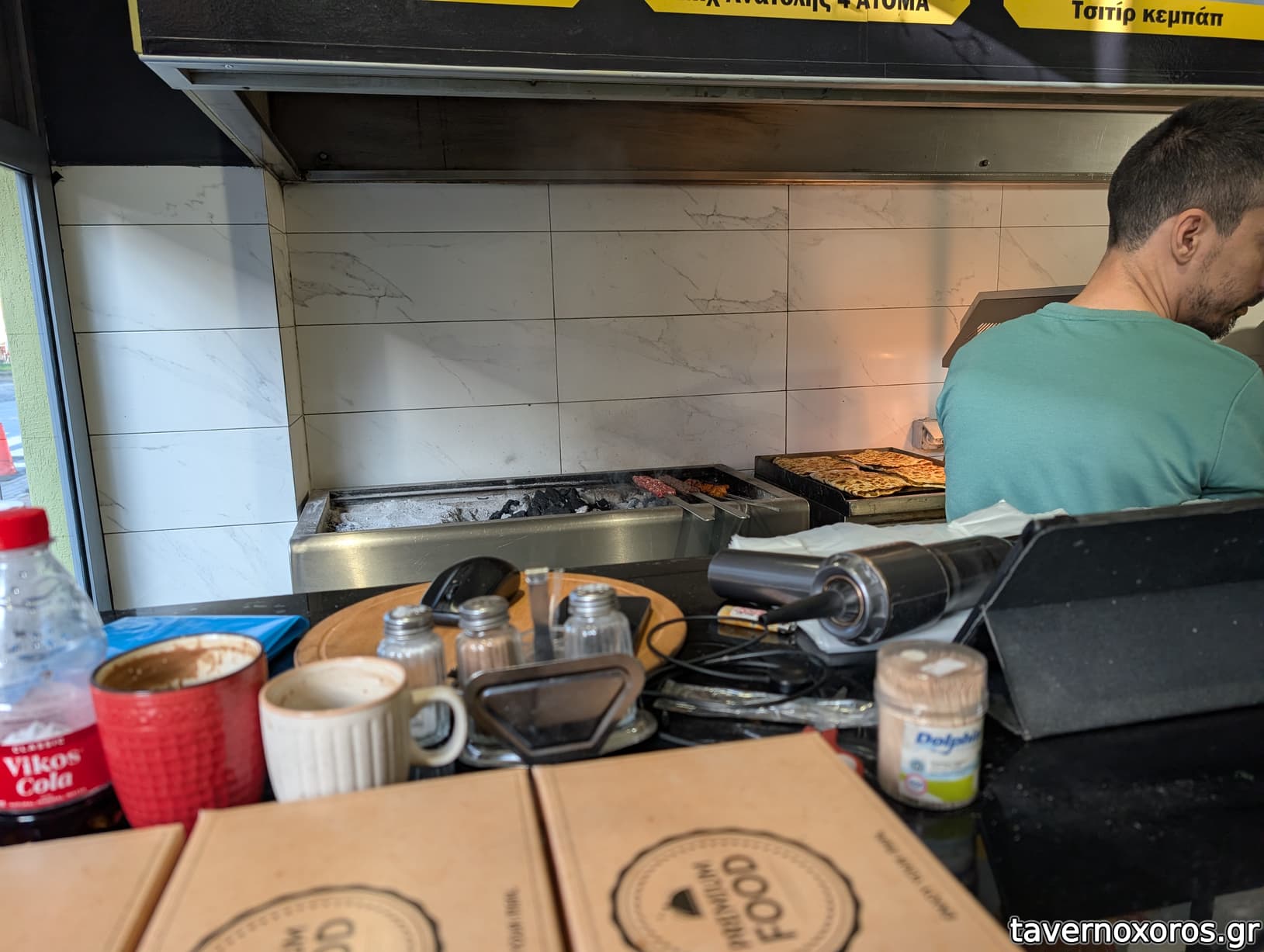 "Κεμπάπ σε λαβάς" με μελιτζανοσαλάτα (νόστιμο το κρέας και η μελιτζανοσαλάτα, πατάτα προκάτ άκυρη, μικρό σάντουιτς ελαφρώς στεγνό, αλλά συνολικά καλό)