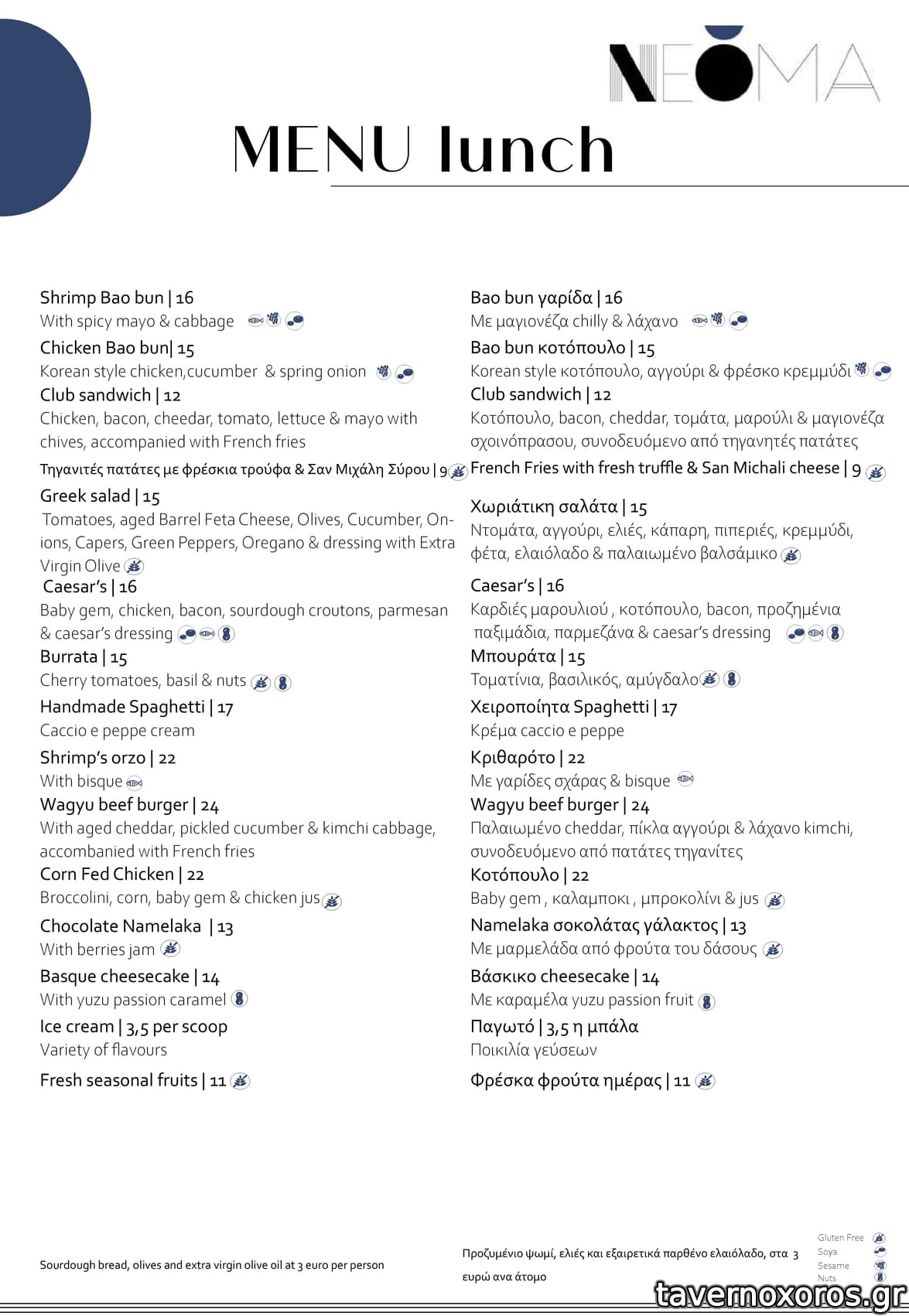 | Λέξεις κλειδιά | Νεομα, #ξενοδοχείο, #ταράτσα, #θέα, #γαρίδες, #κοτόπουλο, #αρνάκι, #οσομπούκο, #κοπές, #wagyu, #bao bun, #club sandwich, #burgers, #ζυμαρικά, #ριζότο, #νιόκι |