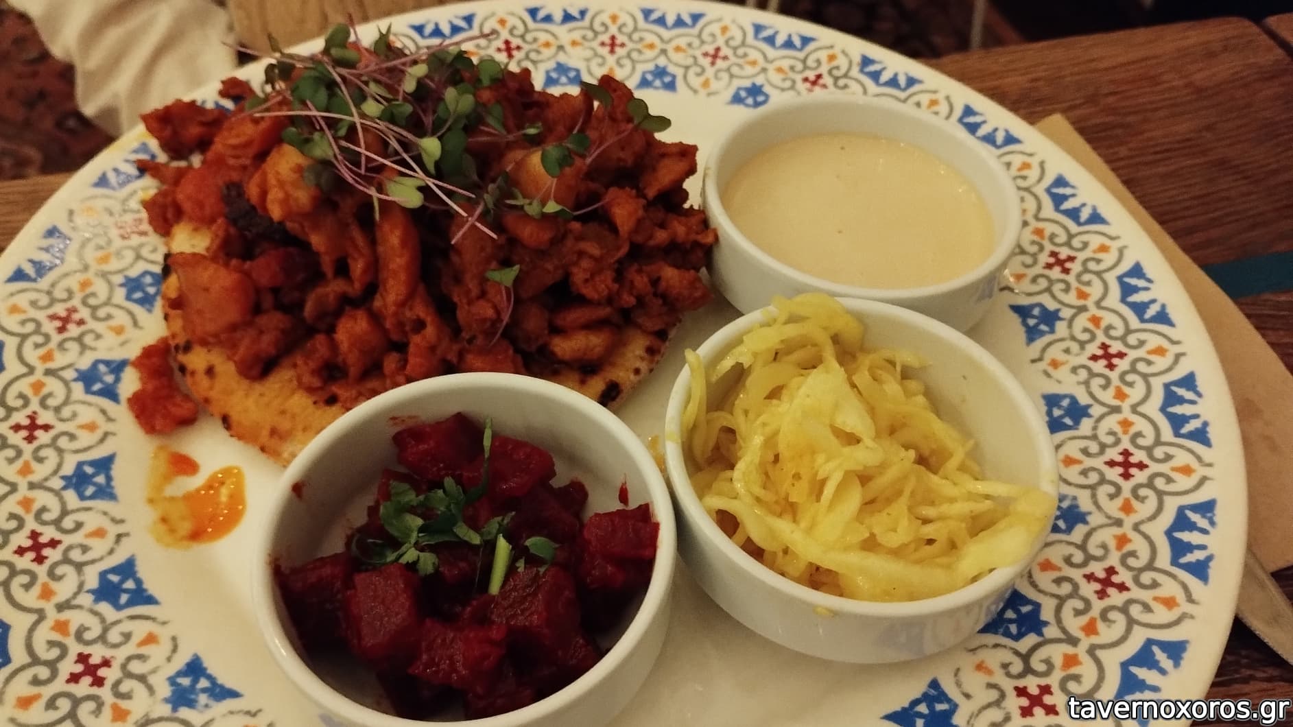 Chicken Shawarma με ταχίνι, λάχανο Υεμένης (με κάρυ) και σαλάτα παντζάρι (ωραιότατο)