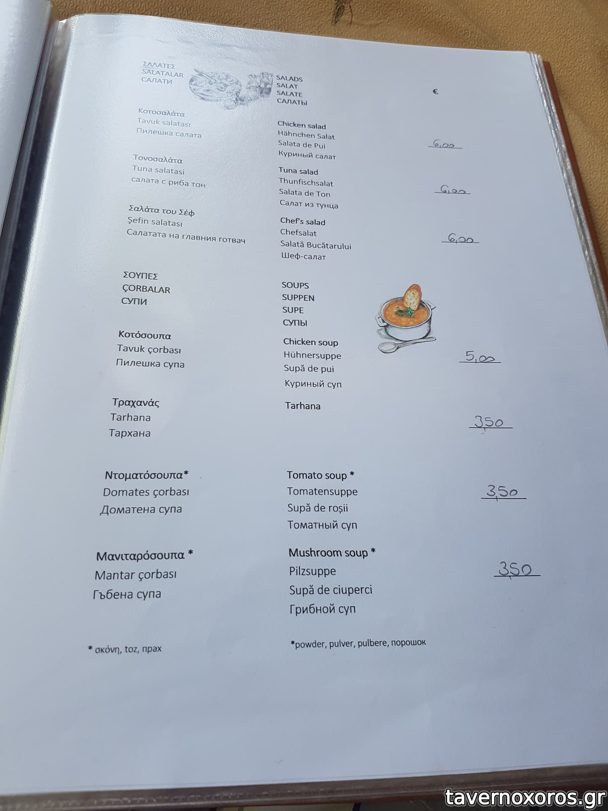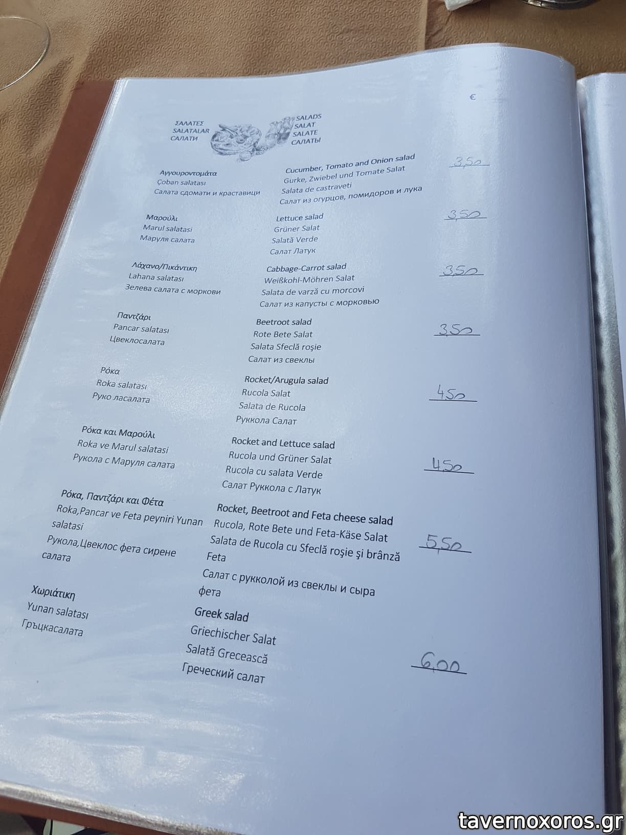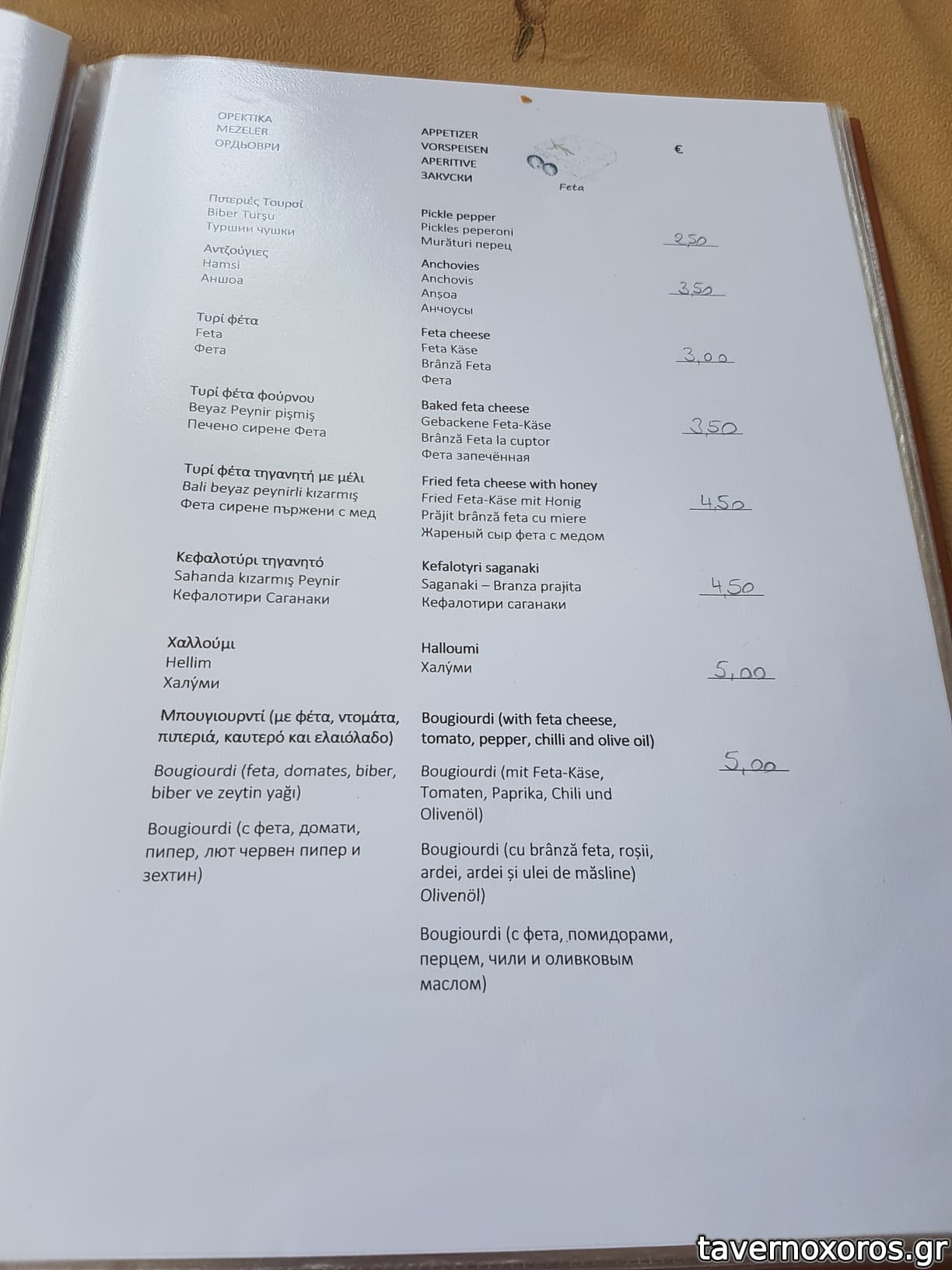 Χαρακτηριστικά θα αναφέρω ότι μας έφερε εμφιαλωμένο νερό και όταν του ζητήσαμε νερό βρύσης σε κανάτα μας είπε ότι απαγορεύεται, ενώ τις προηγούμενες ημέρες σε άλλες ταβέρνες μας φέρναν νερό σε κανάτα, και σε δυο διαφορετικά ξενοδοχεία που μέναμε μας διαβεβαιώναν ότι το νερό στο νησί πίνετε και μάλιστα είναι πολύ καλό!