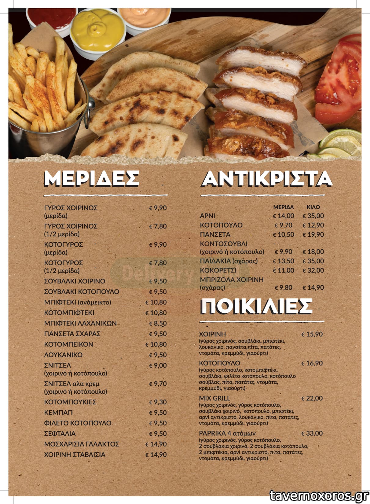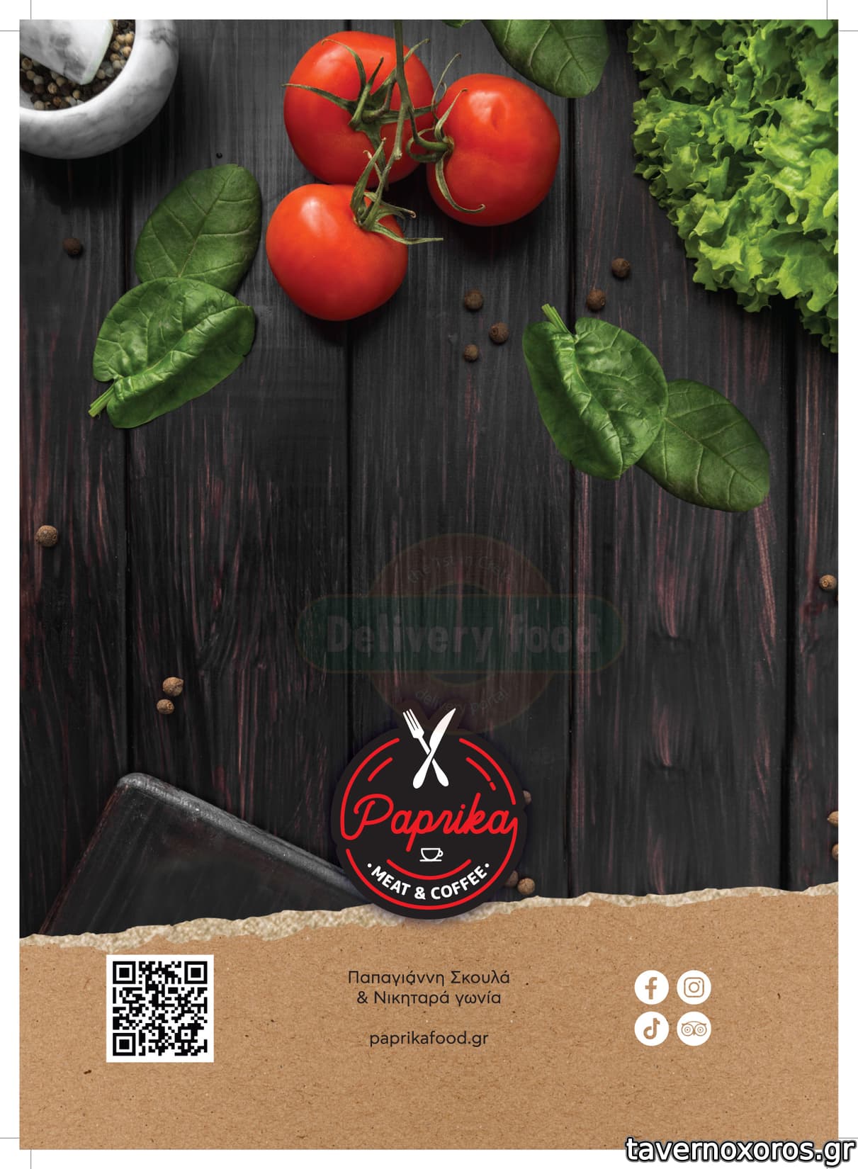 | Λέξεις κλειδιά | Πάπρικα, #tv, #cafe, #εξωτερική θερμάστρα, #σούβλες, #κεμπάπ, #αρνάκι, #κοκορέτσι, #αντικριστό, #αρνάκι ψητό, #παϊδάκια, #σουβλάκια, #μπιφτέκι, #πανσέτα, #λουκάνικο, #κοτόπουλο, #σάντουιτς, #σουτζουκάκια, #σνίτσελ, #σεφταλιά, #χοιρινή, #μοσχαρίσια μπριζόλα, #κότσι, #burgers, #ομελέτα με πατάτες, #κολοκυθοκεφτέδες, #ανθόγαλο, #ντάκος, #χαλούμι, #ντολμαδάκια, #μανιτάρια, #κολοκυθάκια, #στραπατσάδα, #κεφτεδάκια, #σκεπαστή, #μακαρονάδες, #γεμιστά, #σουτζουκάκια σμυρνέικα, #κοκκινιστό, #μπεκρή μεζές, #λεμονάτο, #γιουβέτσι, #μουσακάς, #παστίτσιο, #φασόλια γίγαντες, #ρεβύθια, #λαχανοντολμάδες, #μπακαλιάρος σκορδαλιά, #γιουβαρλάκια, #βραστό |