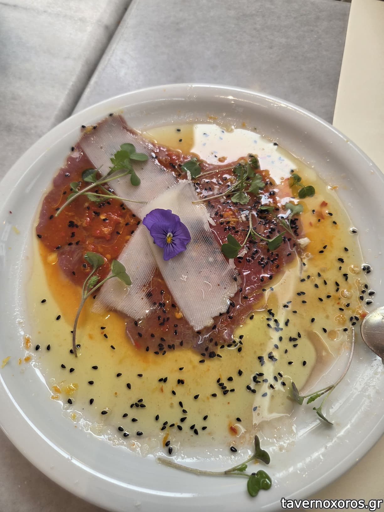 Μοσχάρι καρπάτσιο (έχει φαγωθεί λίγο, ξέφυγε η οξύτητα)