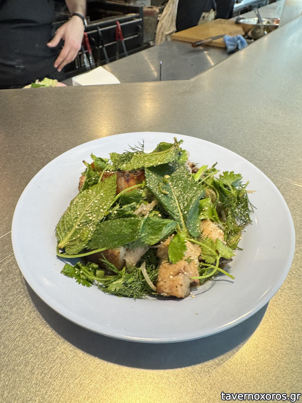 Grilled mackerel with nam jim talay (πολύ καλό, ειδικά η σως εξαιρετική σαν τσιμιτσούρι για ψάρι, αλλά κάλυπτε το ήδη σωστά ψημένο ψάρι)