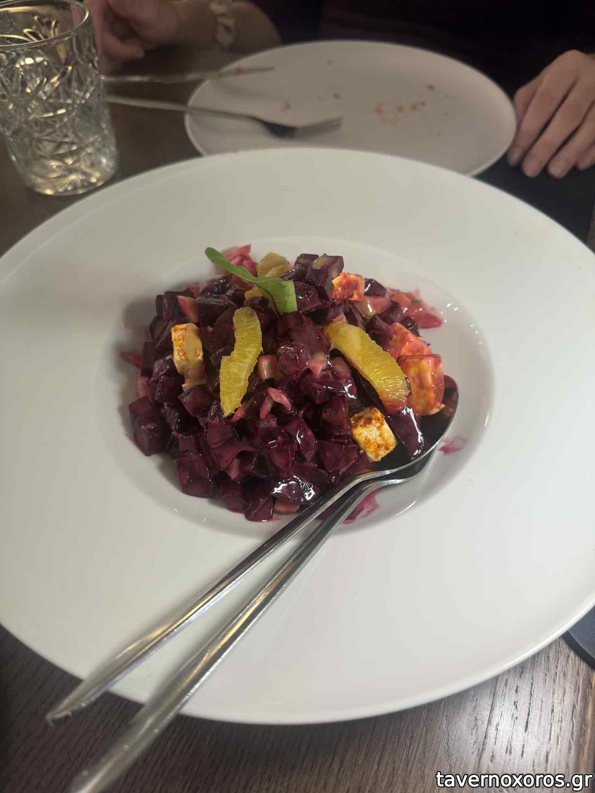 Πατζαροσαλάτα με πορτοκάλι, μαραθόριζα, καπνισμένη φέτα και χαρουπόμελο (πολύ καλή)