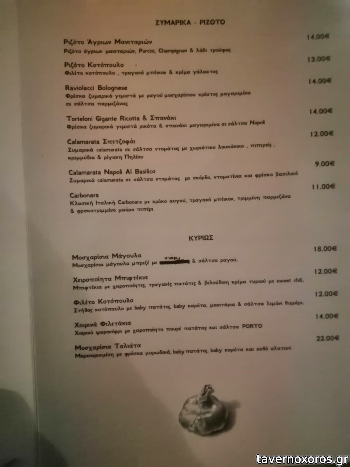 Πήραμε ένα μετριοαδιάφορο ριζότο άγριων(;) μανιταριών και μία σαλάτα caesar's (αυτή ήταν πολύ καλή), οι απατεώνες μας χρέωσαν 3€ για νερό βρύσης (!) και άλλα 3€ για κάτι φέτες παλιόψωμο χωρίς κανένα συνοδευτικό, που δεν αγγίξαμε αλλά δεν είχα όρεξη για φασαρία, σύνολο 45€ για το τίποτα. Κάκιστοι επαγγελματίες (;) της εστίασης, ώρα τους κακή. Για να είμαι δίκαιη η αυλίτσα το βράδυ ήταν συμπαθητική αλλά τι να το κάνεις;