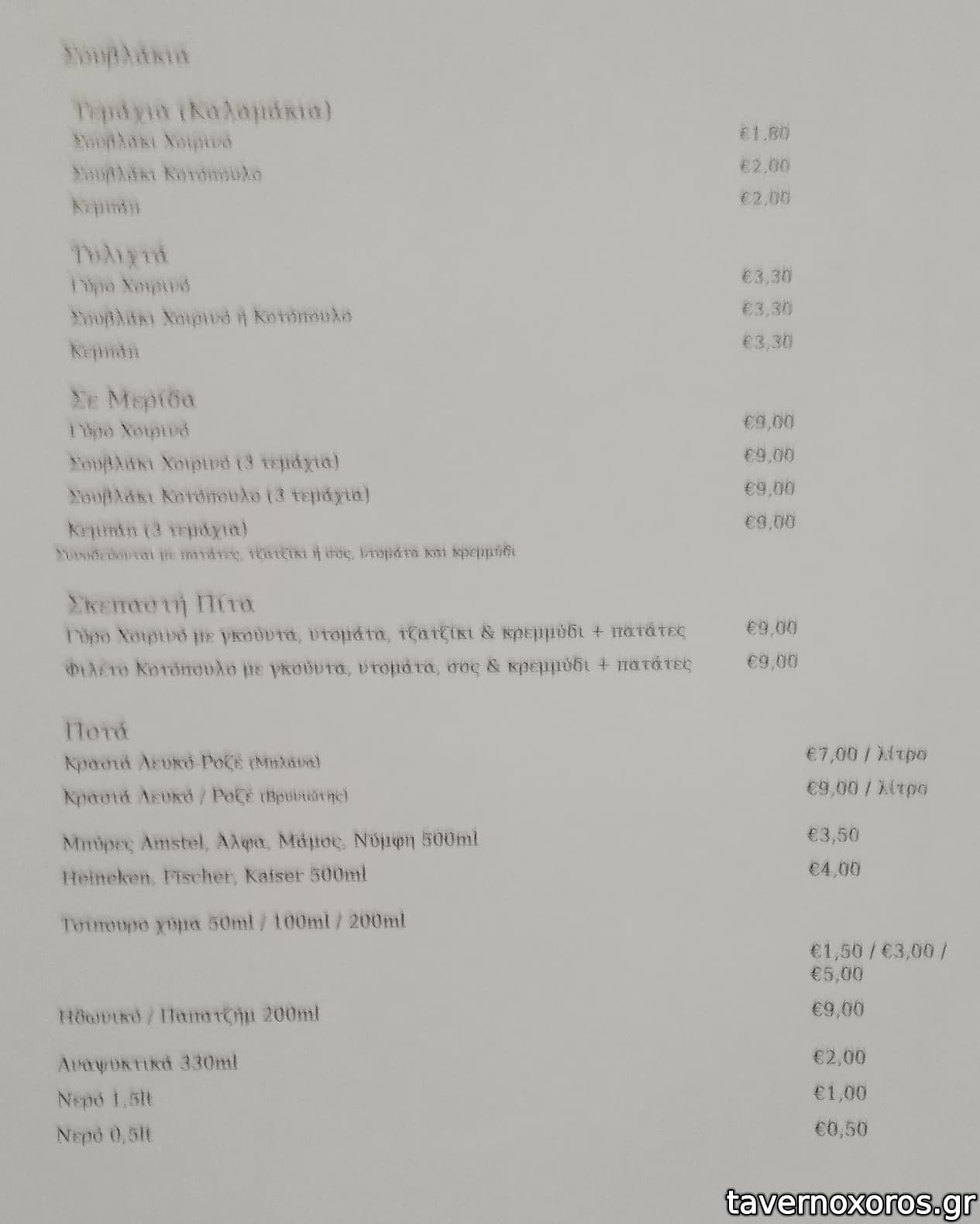 παϊδάκια" προβατίνα (τα οποία όπως ήταν αναμενόμενο δεν ήταν παϊδάκια...), τσίπουρο, μπύρες, αναψυκτικά, ψωμάκι, νεράκι (βλ. φωτο).