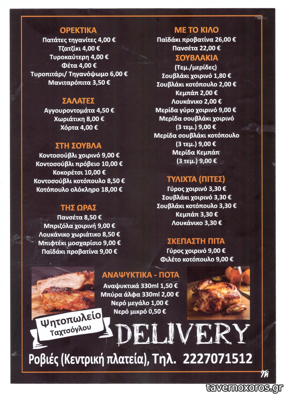 Λαϊκό ψητοπωλείο με γύρο και σούβλες στην απλόχωρη πλατεία του χωριού. Το προτιμούν και οι ντόπιοι. Το καλοκαίρι μαζεύει πολύ κόσμο.