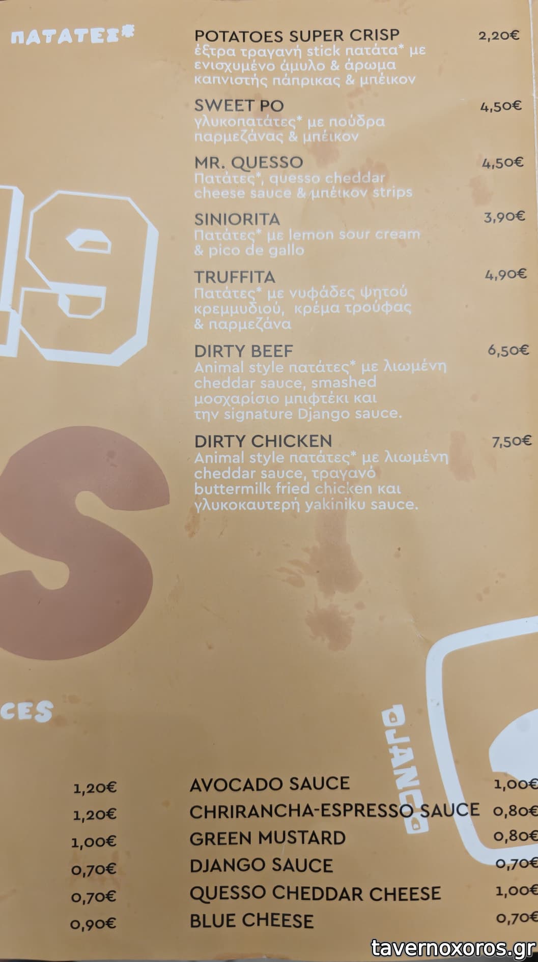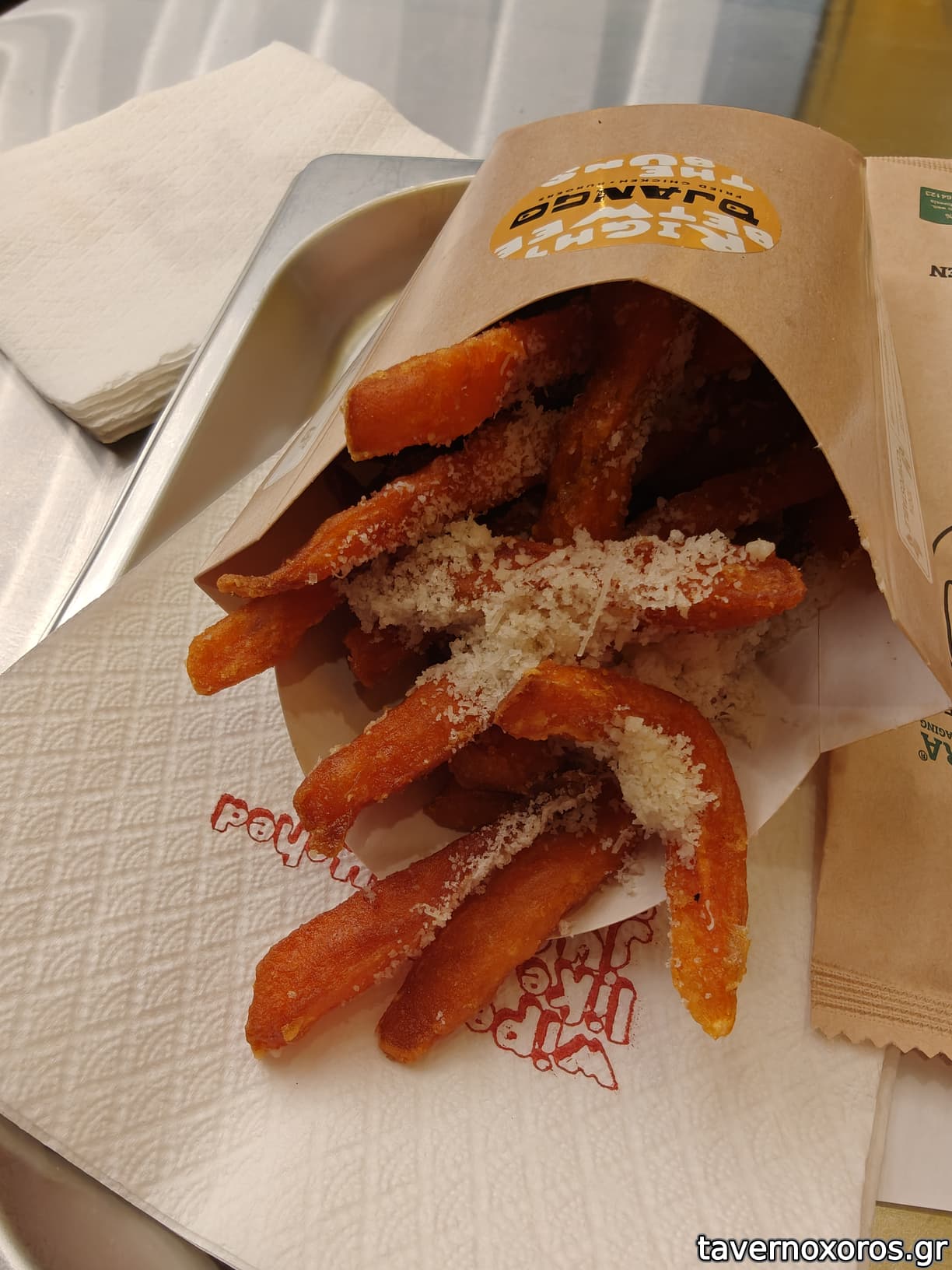 Οι γλυκοπατάτες (sweet po) τις κατατάσσω στις μετριοκαλές λόγω ότι ήταν αρκετά τραγανές και σκληρές, έντονα αλμυρές λόγω της παρμεζάνας ενώ δεν σερβιρίστηκαν με μπέικον λόγω λάθους (ok μπορεί να συμβεί λόγω φόρτου εργασίας). Συνολικά δεν αξίζουν για τα 4,