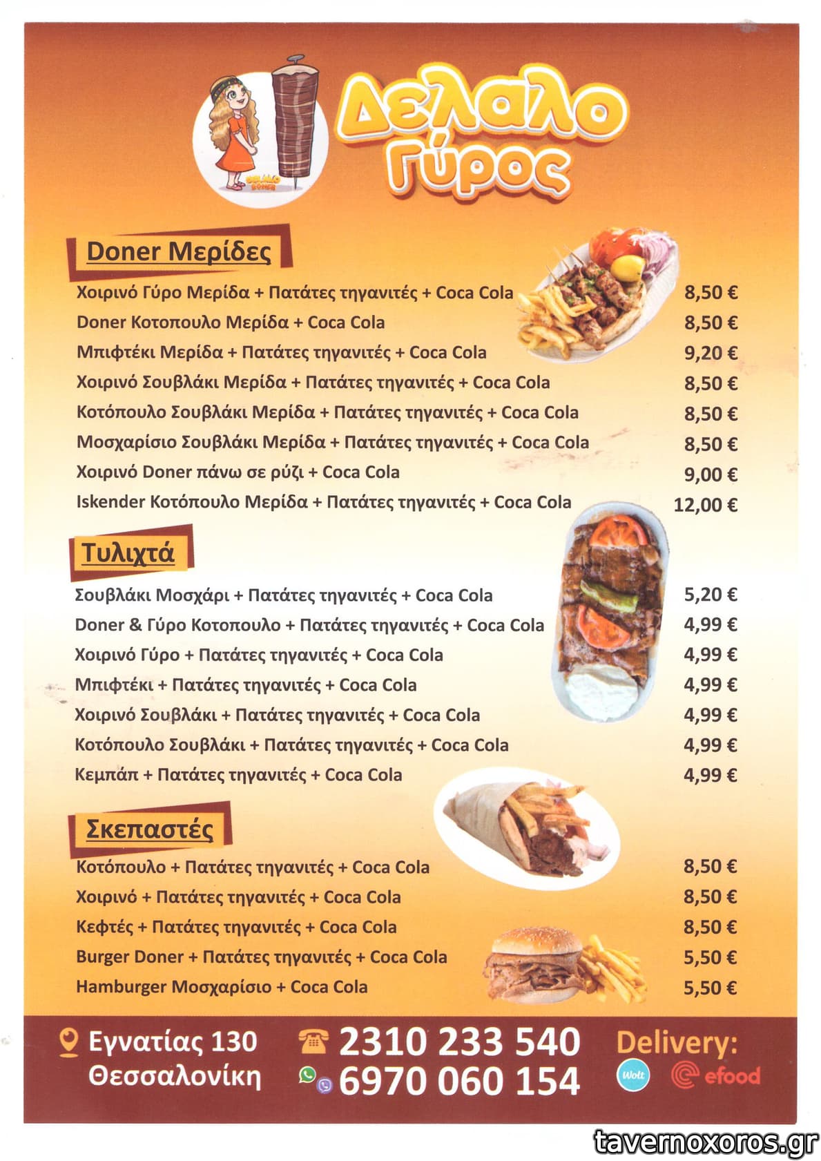 | Λέξεις κλειδιά | Delalo Döner, #doner, #τούρκικο, #εζμέ, #γύρος μοσχαρίσιος, #σουβλάκια, #σουτζουκάκια, #μοσχαρίσιο σουβλάκι, #κοτόπουλο, #σάντουιτς, #σκεπαστή, #κεφτεδάκια, #burgers, #iskender, #μπιφτεκάκια, #πάπρικα |