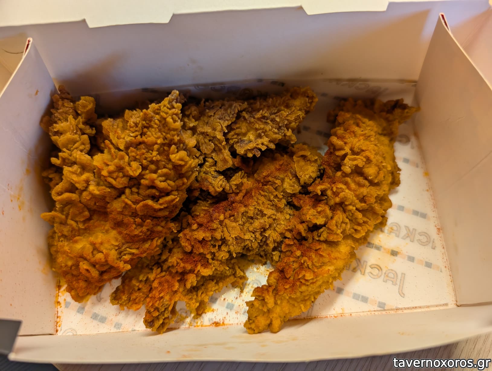 "Spicy fried chicken fingers" (νόστιμο, αλλά είναι σαν τα κανονικά με σκόνη πάπρικα από πάνω, κλάιν δηλαδή)