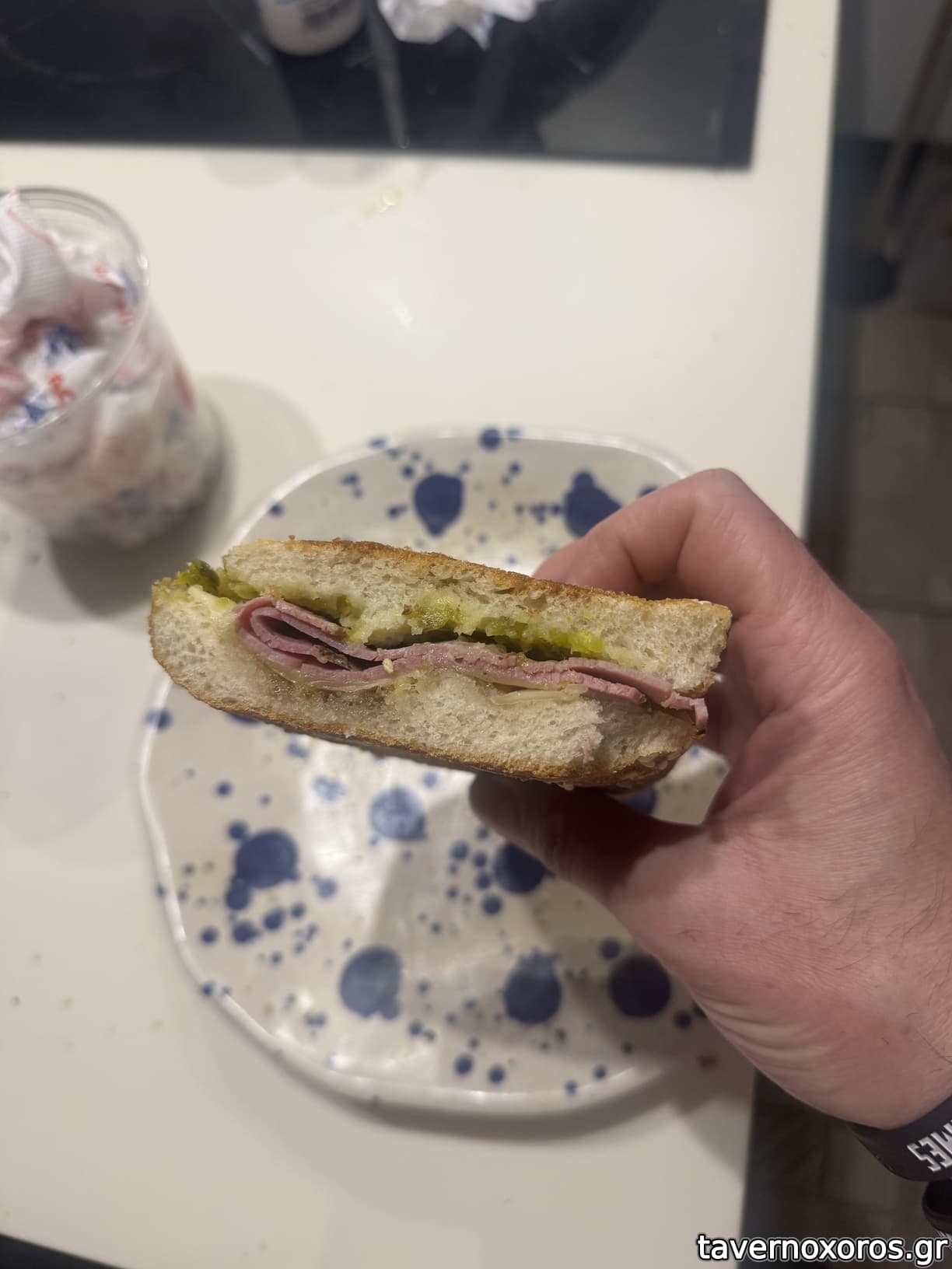 Παστράμι με μουστάρδα dijon, μαρμελάδα σύκο, sweet pickle chutney και δεν μπορώ να θυμηθώ τα υπόλοιπα υλικά αλλά ήταν ίσως με διάφορα το καλύτερο σάντουιτς το τρέχων έτος για μένα