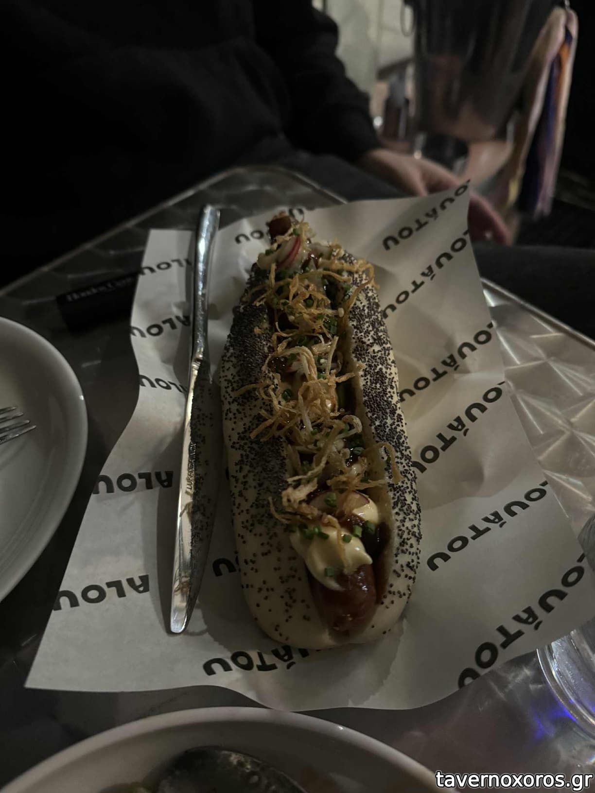 Hot dog ατμού, μοσχαρίσιο λουκάνικο Τζουμαγιάς, κέτσαπ μανιταριού (εξαιρετικό)