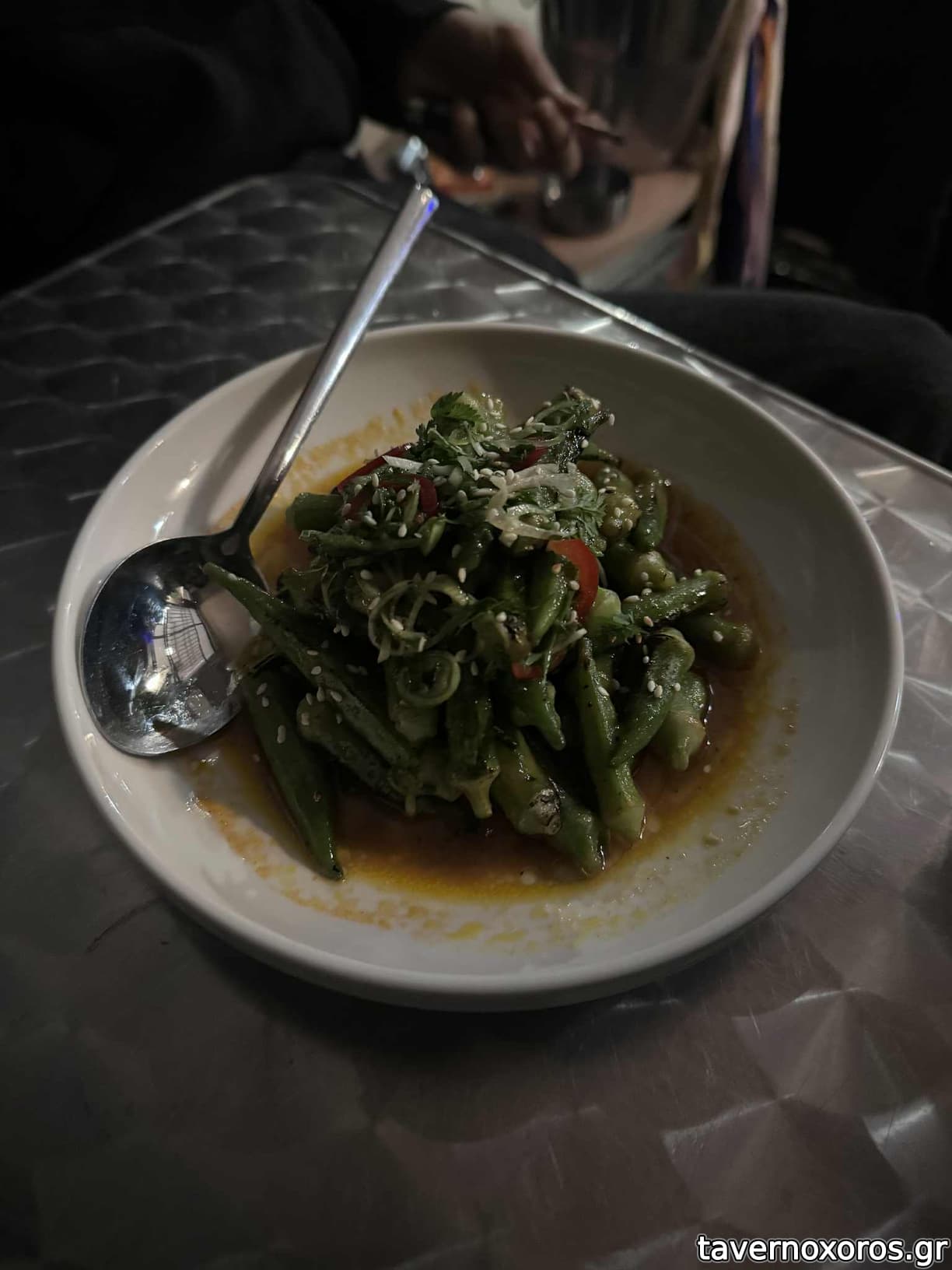 Μπάμιες στα κάρβουνα, miso (αντί για φασολάκια, ενδιαφέρον, πολύ καλή η σάλτσα)