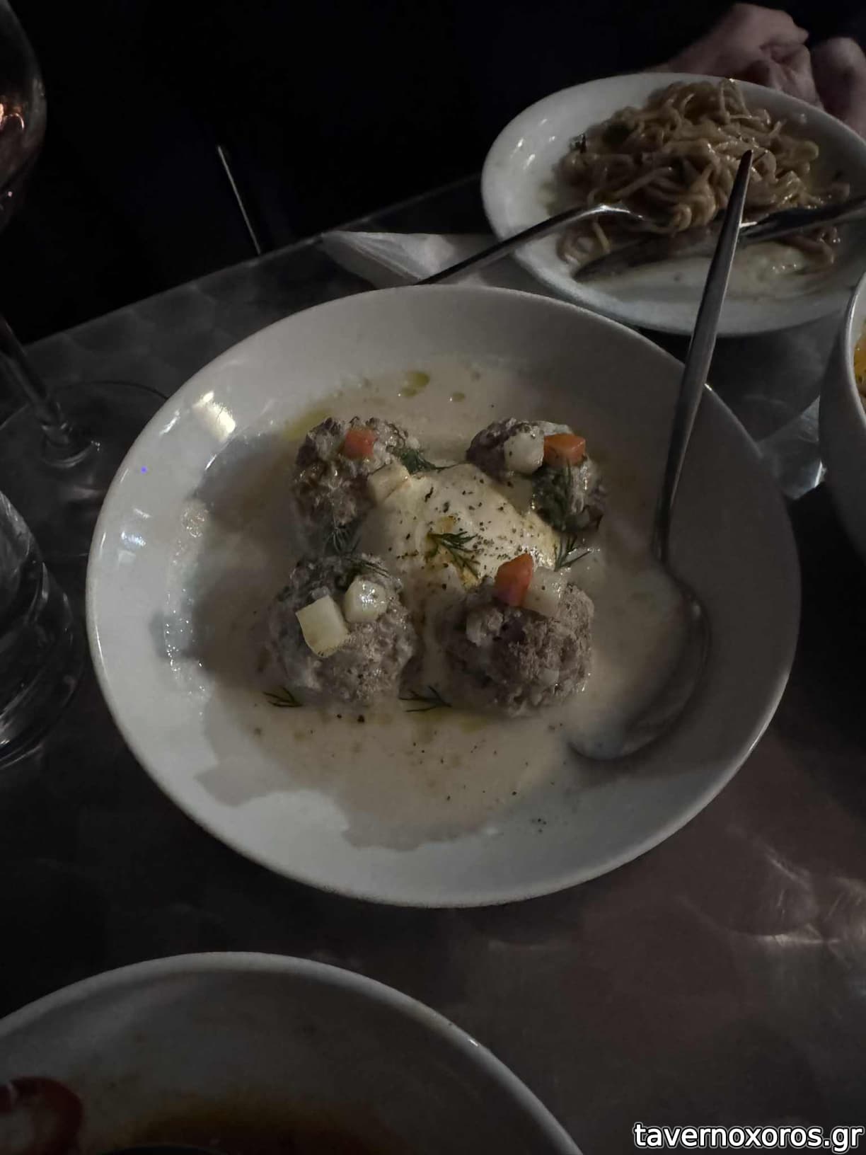 Γιουβαρλάκια, lemongrass, λάδι καρότου (το γιουβαρλάκι μέτριο, έλειπαν εντάσεις, η σάλτσα lemongrass αυγολέμονο πολύ καλή)
