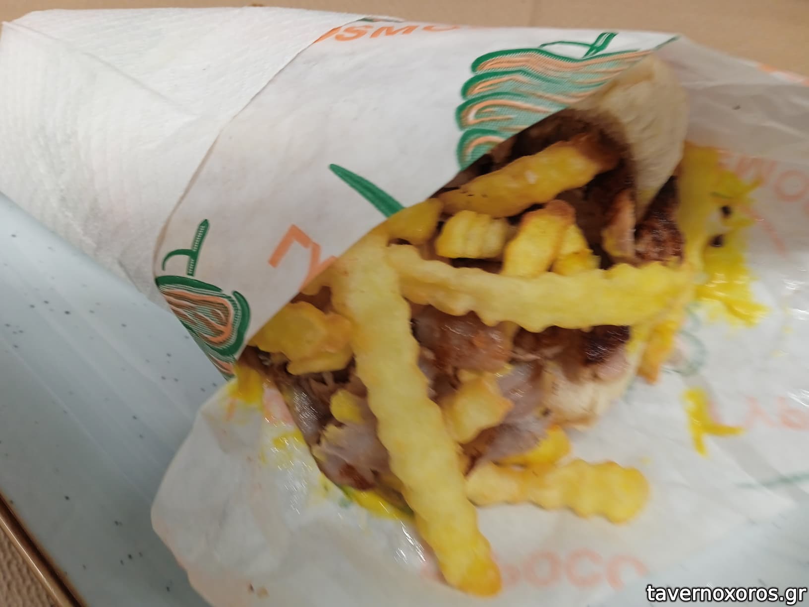 Τιποτα ιδιαίτερο, ο κλασσικός αδιάφορος καταψυγμένος γύρος που έχει το 90% της Θεσσαλονίκης, οι πατάτες ειδικά ειναι για πέταμα.