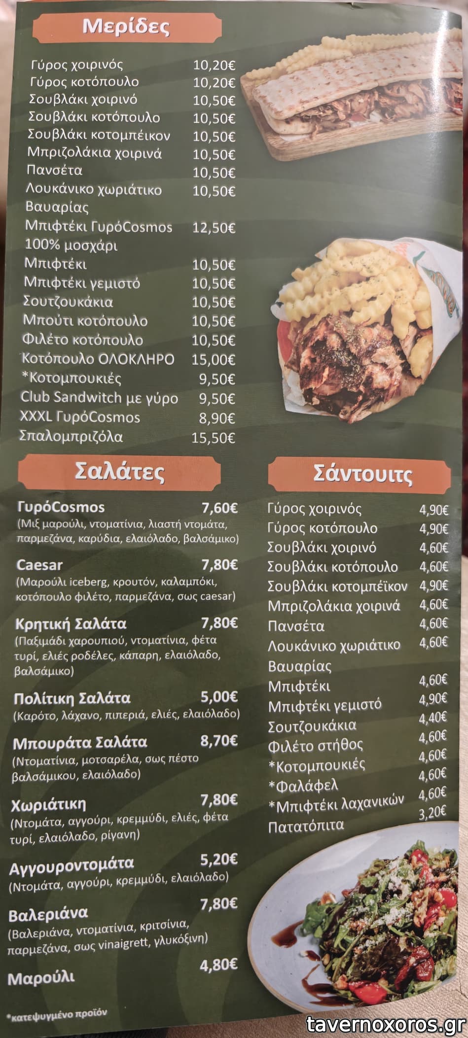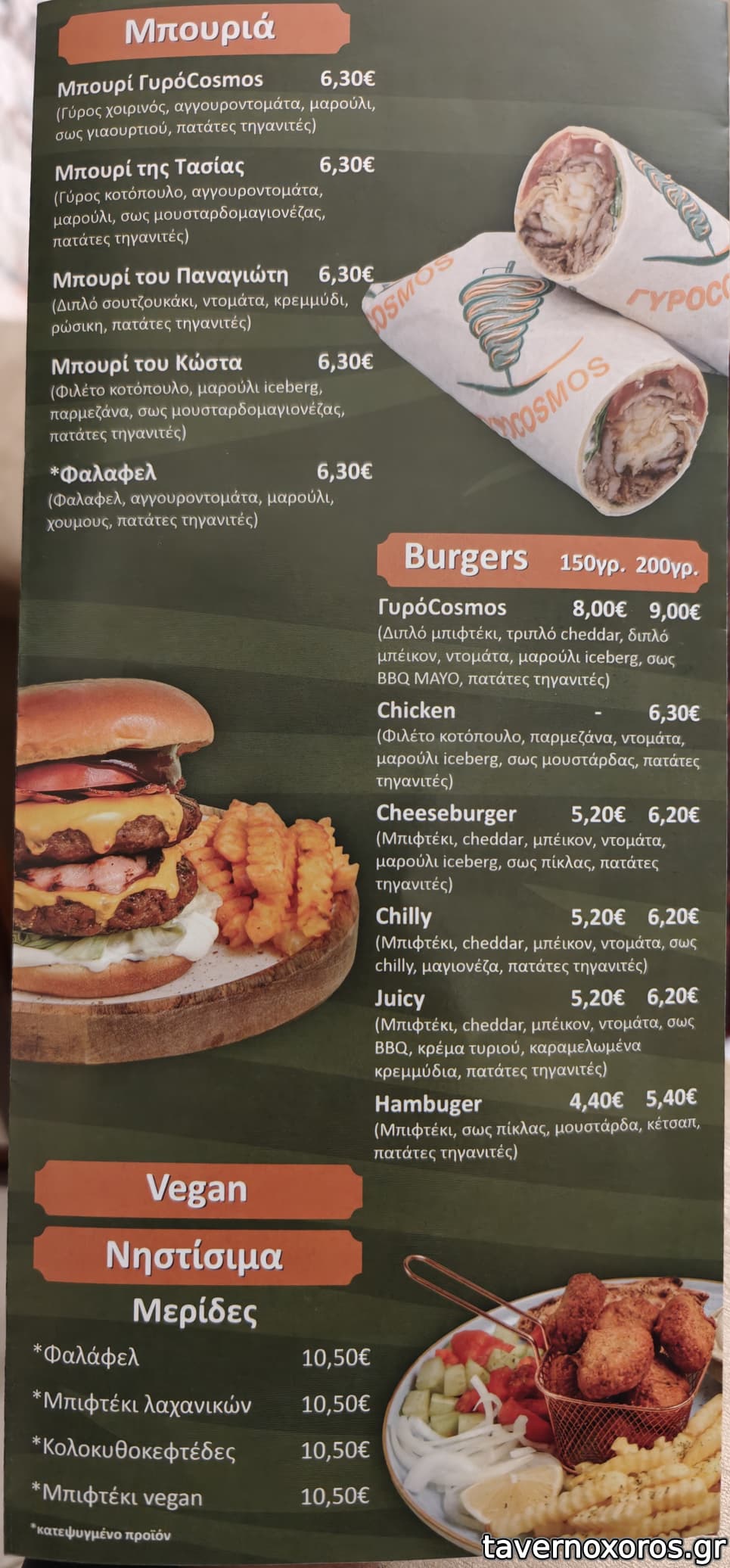 | Λέξεις κλειδιά | Γυροκόσμος, Gyrocosmos, #εξωτερική θερμάστρα, #σάντουιτς, #σουβλάκια, #σουτζουκάκια, #μπιφτέκι, #κοτόπουλο, #χοιρινή, #πανσέτα, #λουκάνικο, #μπιφτέκι γεμιστό, #falafel, #πιπεριές, #κοπανιστή, #πάπρικα, #πανσετομπριζόλα, #μοσχαρίσια σπαλομπριζόλα, #κοτόπουλο σχάρας, #ντάκος, #κολοκυθοκεφτέδες, #burgers, #club sandwich |