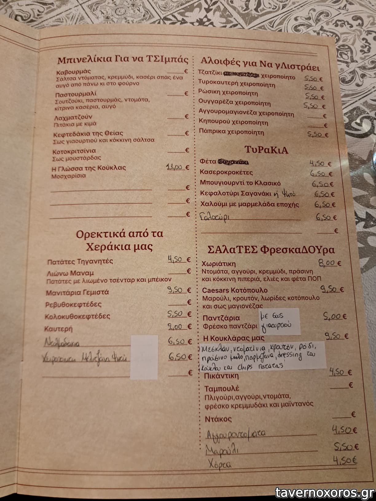 Ελάχιστες επιλογές σε ορεκτικά, παίζουν κυρίως κρέατα και σούβλες. Δυστυχώς μας είπαν πως από σούβλες είχαν μείνει μόνο κοκορέτσι και μια μερίδα κοντοσούβλι κοτόπουλο.
