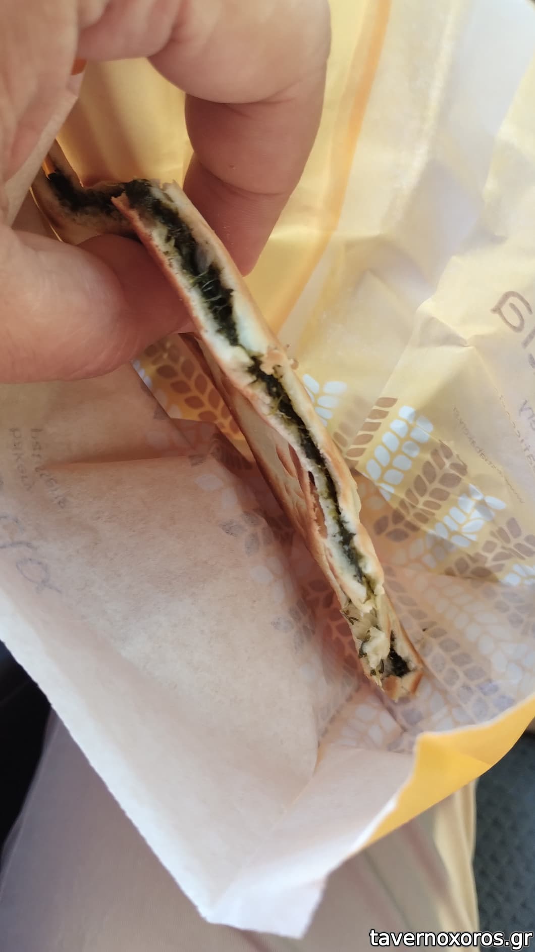 Πήρα μια Κρητική Βοσκόπιτα με χόρτα, που μού φάνηκε ενδιαφέρουσα. Τελικά ήταν καλή (αν και πολύ λεπτή), αλλά η γέμιση ήταν άνευρη και άνοστη. (2,