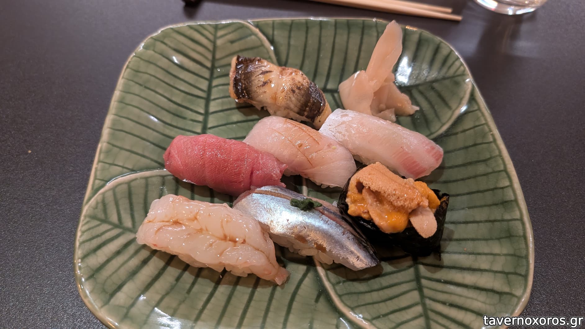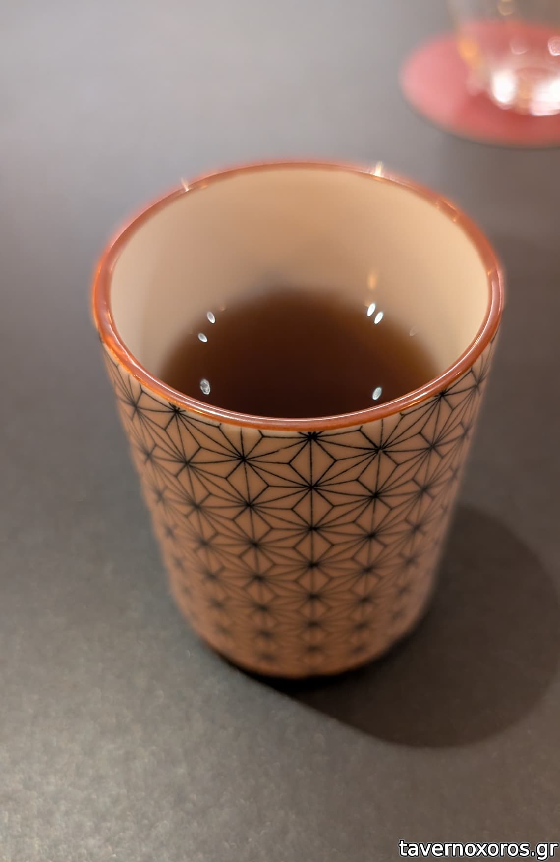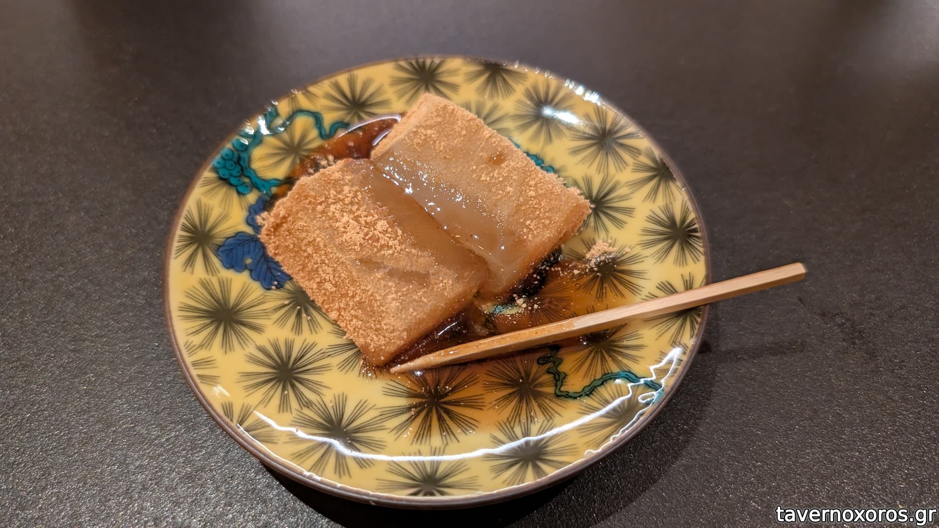 Green tea για το επιδόρπιο (μάλλον hōjicha, roasted green tea)