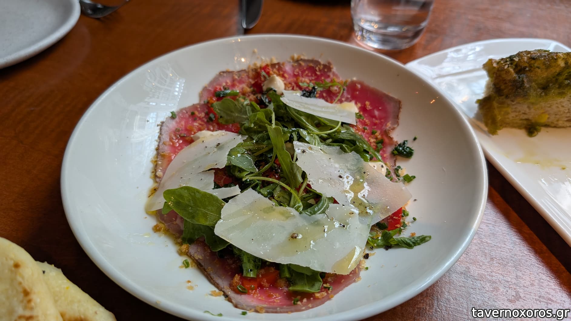 Beef Carpaccio — broccoli rabe, anchovy, Grana Padano
