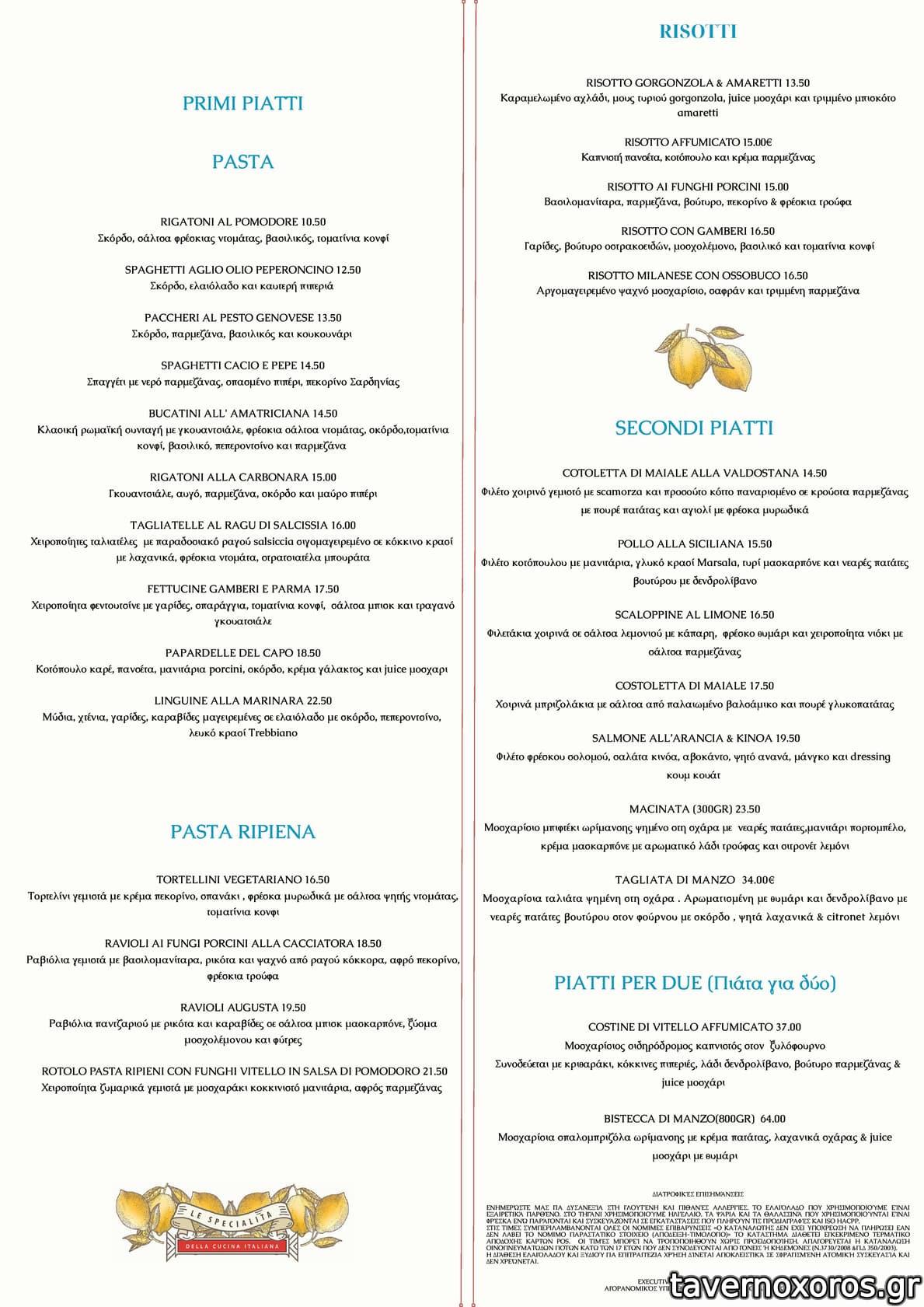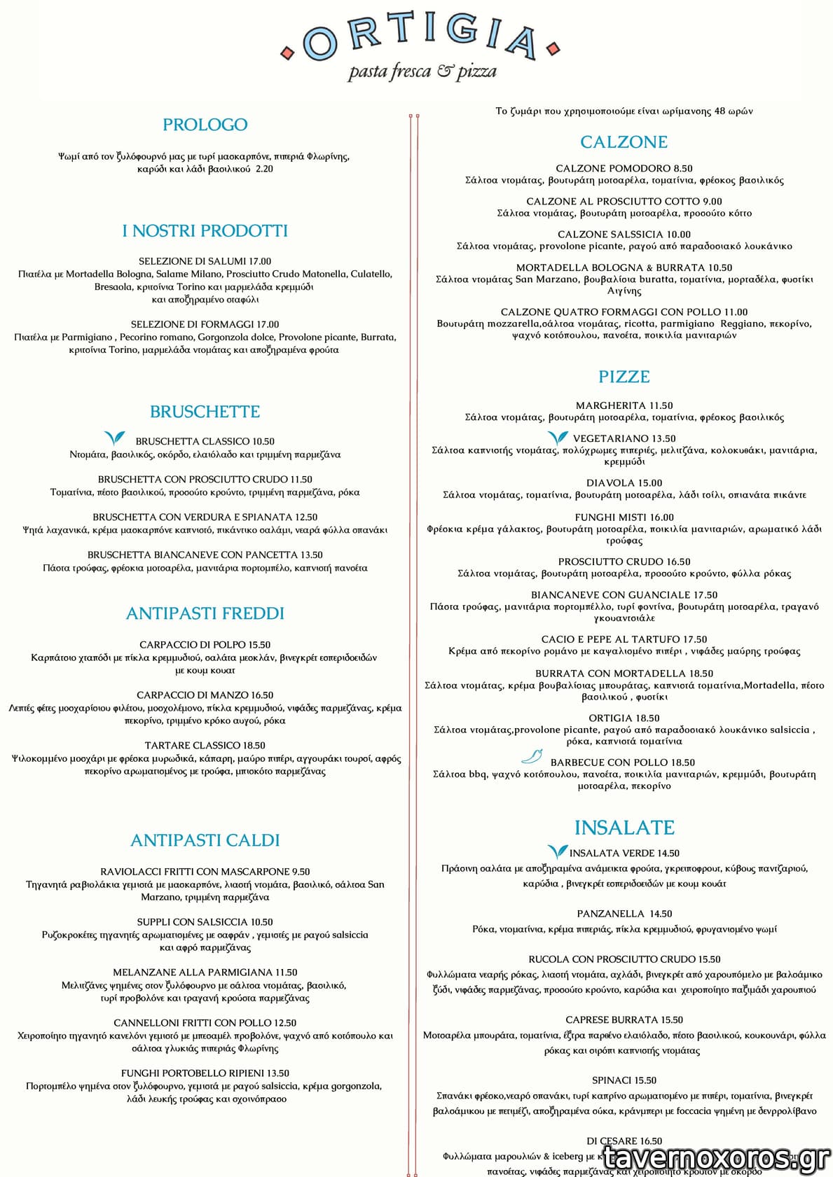 | Λέξεις κλειδιά | Ορτίγκια, #ιταλικό, #pasta fresca, #καλτσόνε, #ζυμαρικά, #κανελόνια, #ριζότο, #ψαρονέφρι, #κοτόπουλο, #χοιρινή, #μπιφτέκι, #steaks, #σολομός |