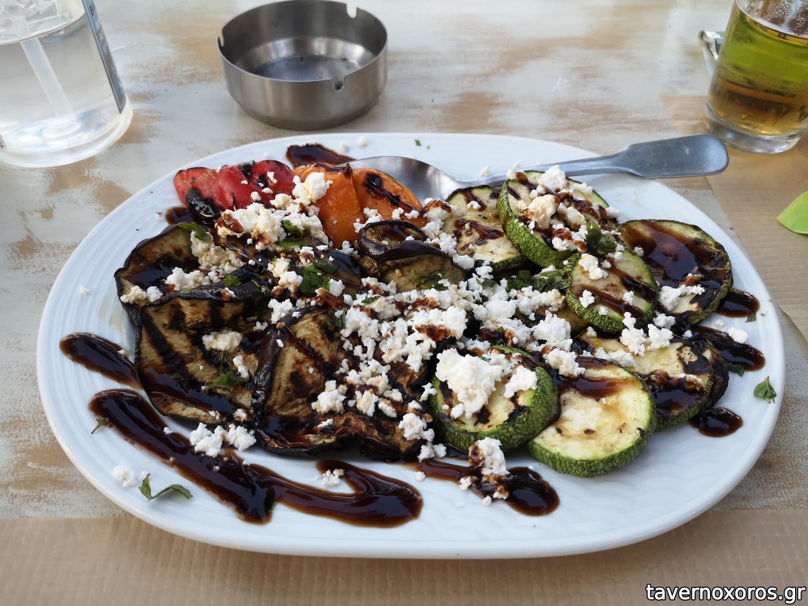 Ψητά λαχανικά (μελιτζάνα, κολοκύθι, πιπεριά) με ανθότυρο και κρέμα βαλσάμικου - οκ.