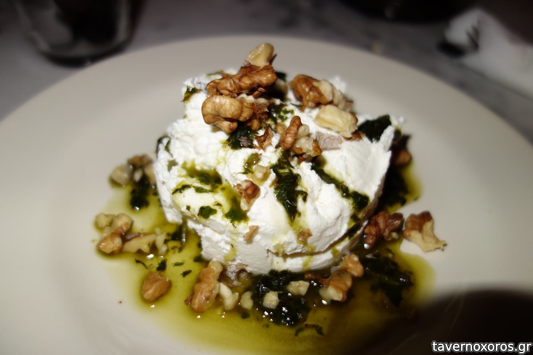 "Μους φρέσκων τυριών με σως βασιλικού και καρύδια" (οκ)