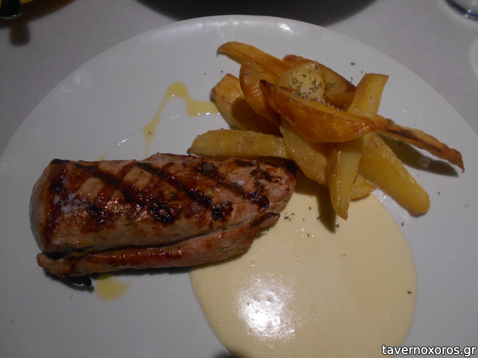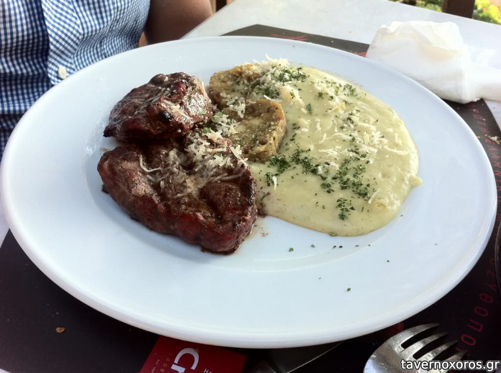 Φιλέτο μοσχάρι ψητό με κρέμα πατάτας πράσο και μετσοβόνε