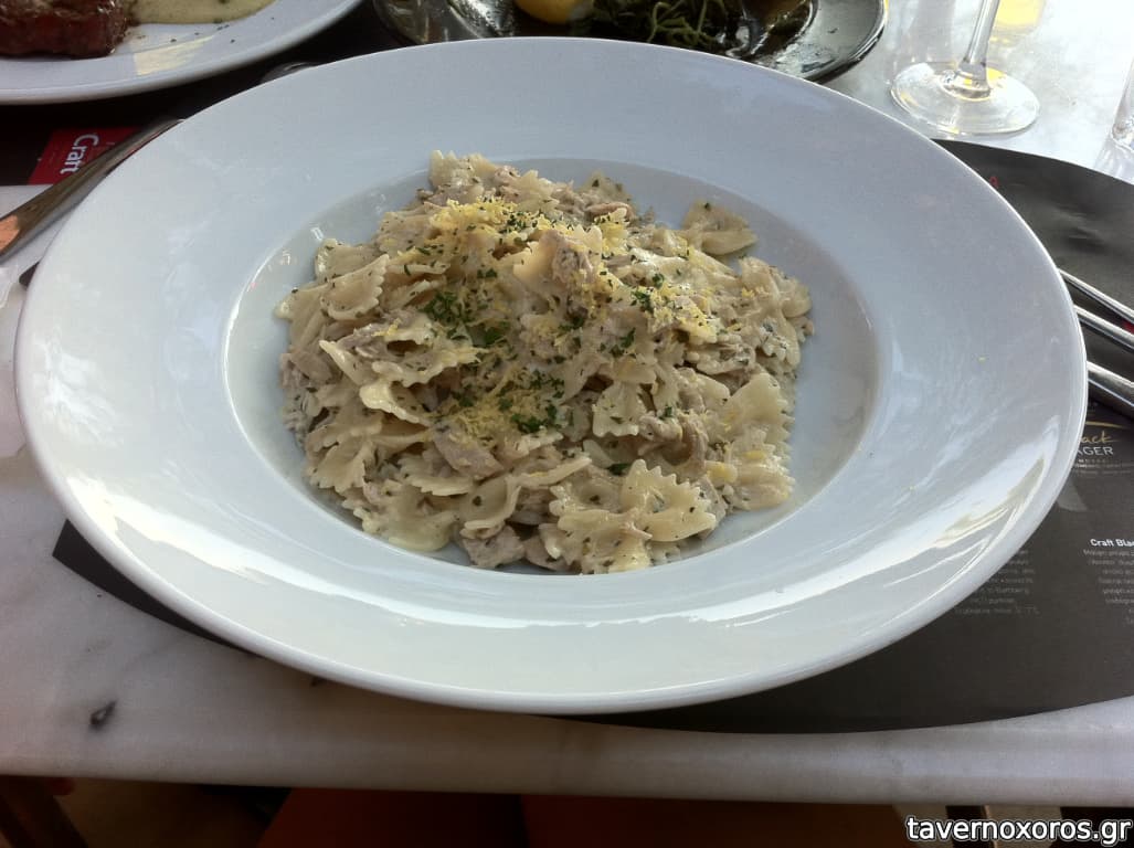 η κοπέλα μου προτίμησε ζυμαρικό με τόνο αλονήσου και κρέμα λεμονιού στο κατάλογο, ανέφερε για μαύρες στο χέρι ταλιατέλες αλλά δυστηχώς ουτε απο αυτό είχε. Καλό αλλά λογικό είναι το αρχικό πιάτο με τα χειροποίητα μακαρόνια να έκανε τι διαφορά σε σχέση με τα βιομηχανοποιημένα "
