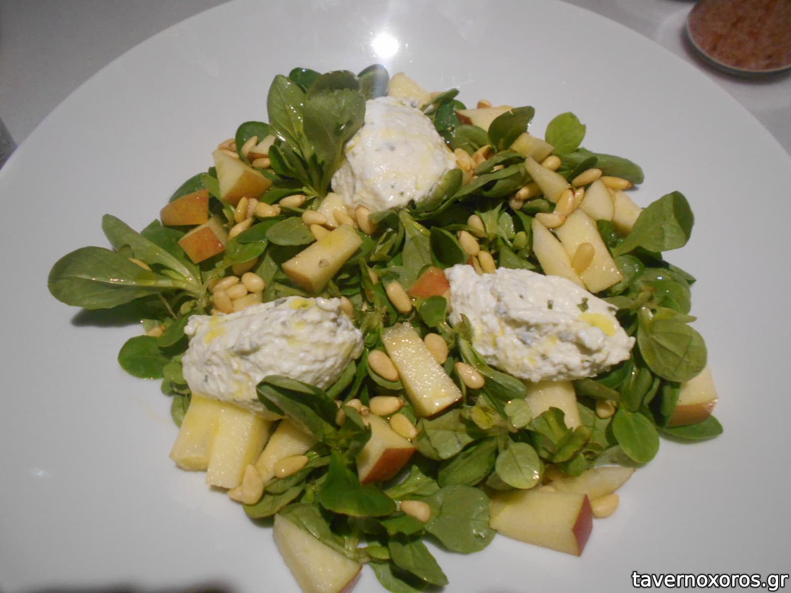 Σαλάτα βαλεριάνα, ξινόμηλο, σως ροκφόρ, κουκουνάρι