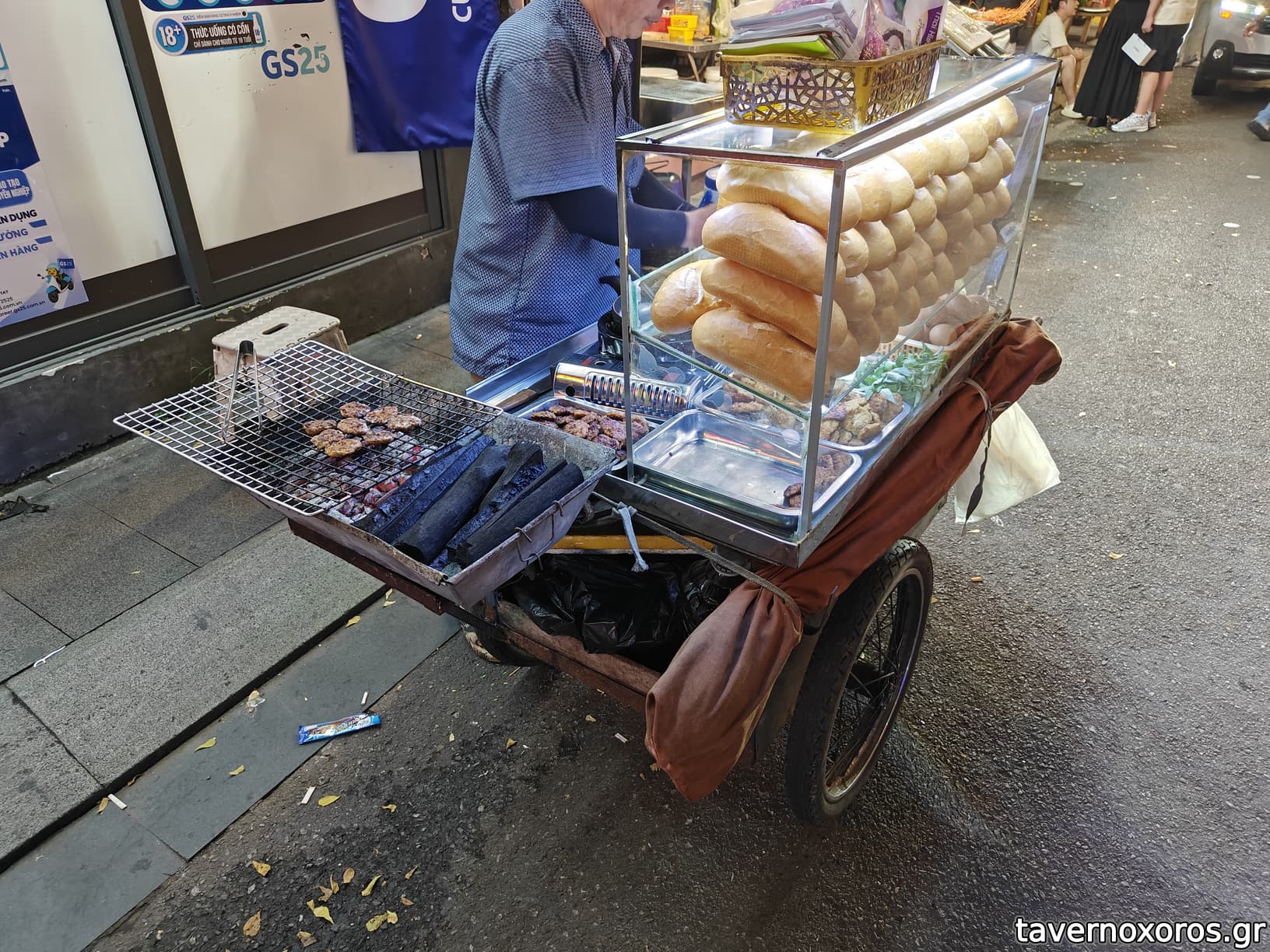 Ακριβώς απέναντι ένας κυριούλης πουλούσε banh mi.