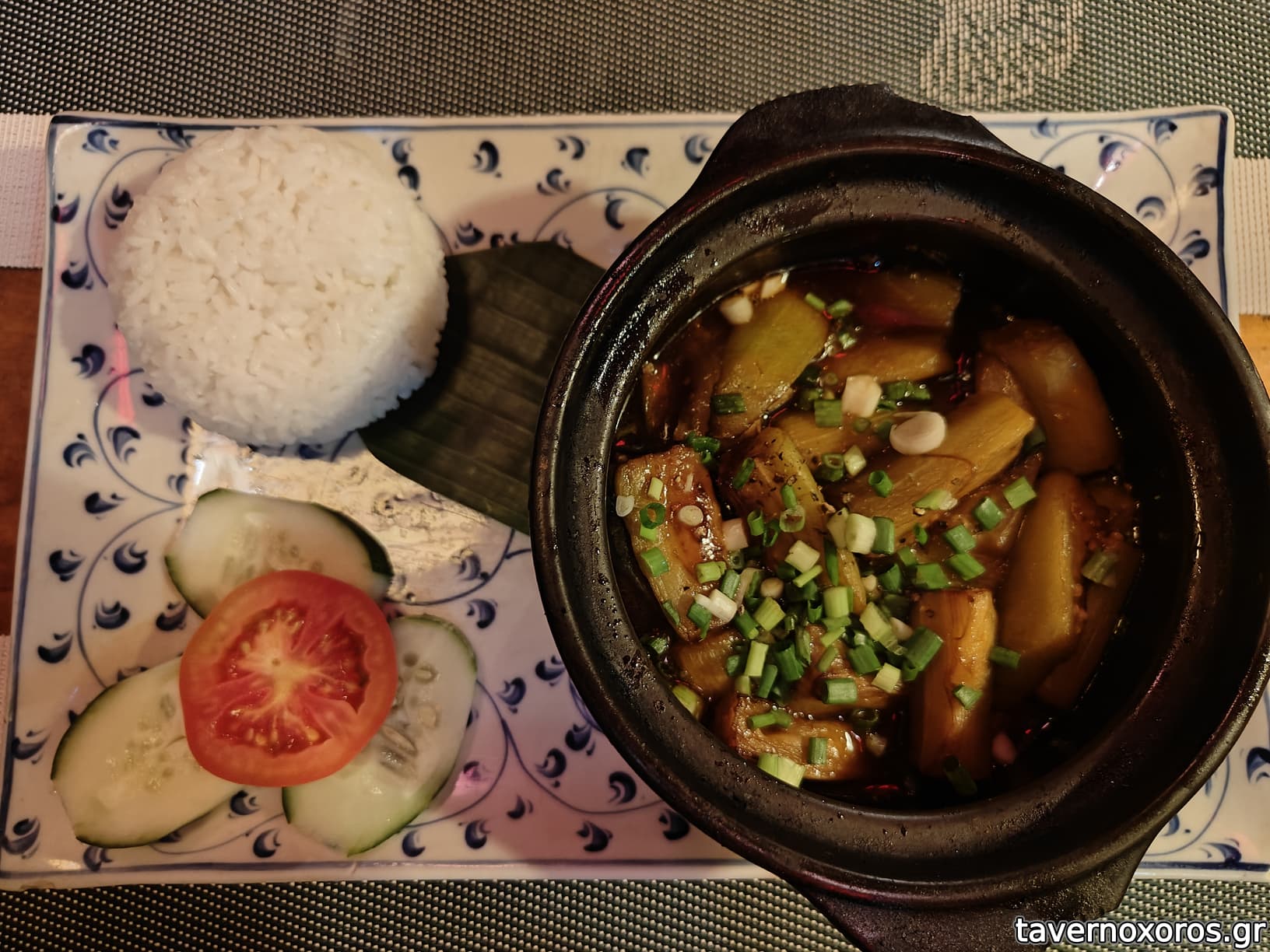 Από τις επιλογές για κυρίως, είπαμε να κάνουμε την υπέρβαση και ζητήσαμε το ακριβότερο, το seafood hot pot. Η ευγενέστατη σερβιτόρα με τα λίγα αγγλικά που ήξερε, μας εξήγησε πως το πιάτο δεν είναι για μόνο 2 άτομα αλλά για παραπάνω! Κρίνοντας από την τιμή του (κάτω από 9 ευρώ) και του γεγονότος ότι αυτοχαρακτηριζόμαστε ως φαγανοί, επιλέξαμε να το πάρουμε.