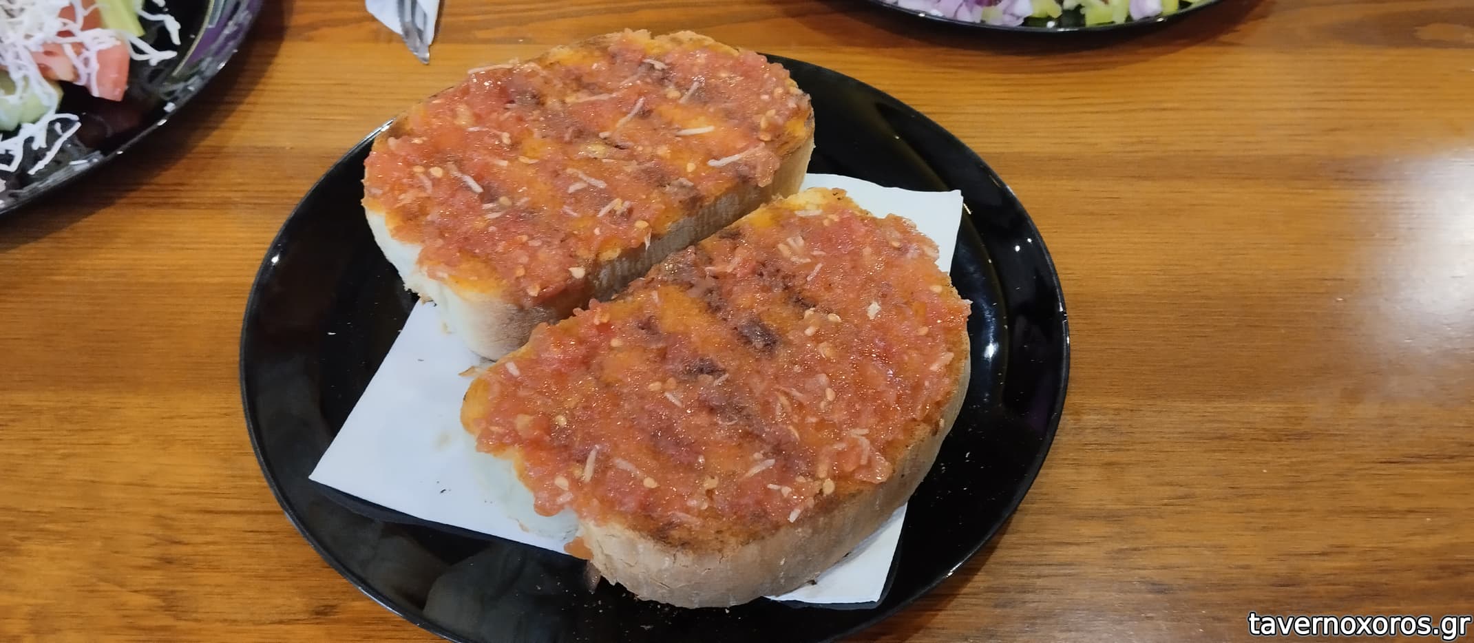 Φέτα ψωμί περασμένη από τη σχάρα με σάλτσα ντομάτας και σκόρδο