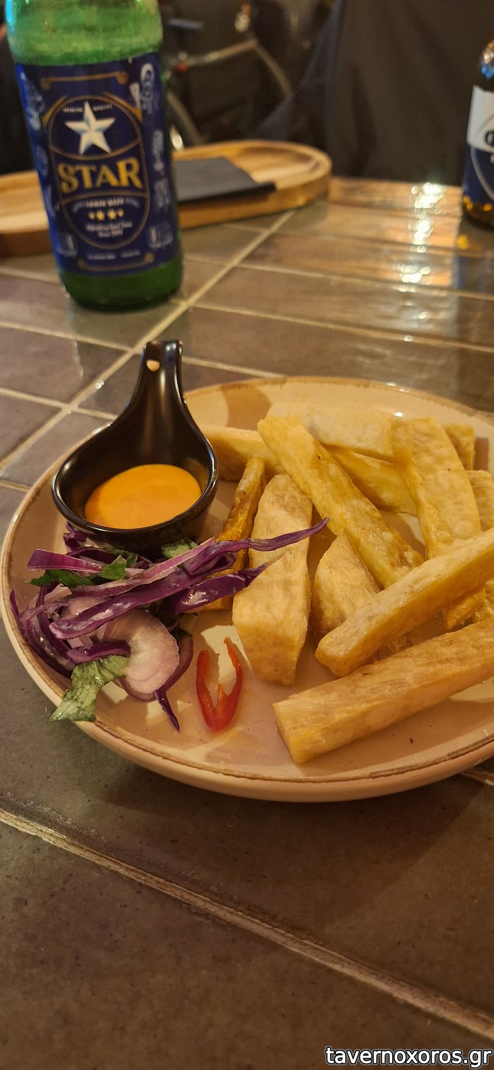 Fried yam sticks (καλούτσικο, θυμίζει τηγανητή πατάτα, η σως ωραία)