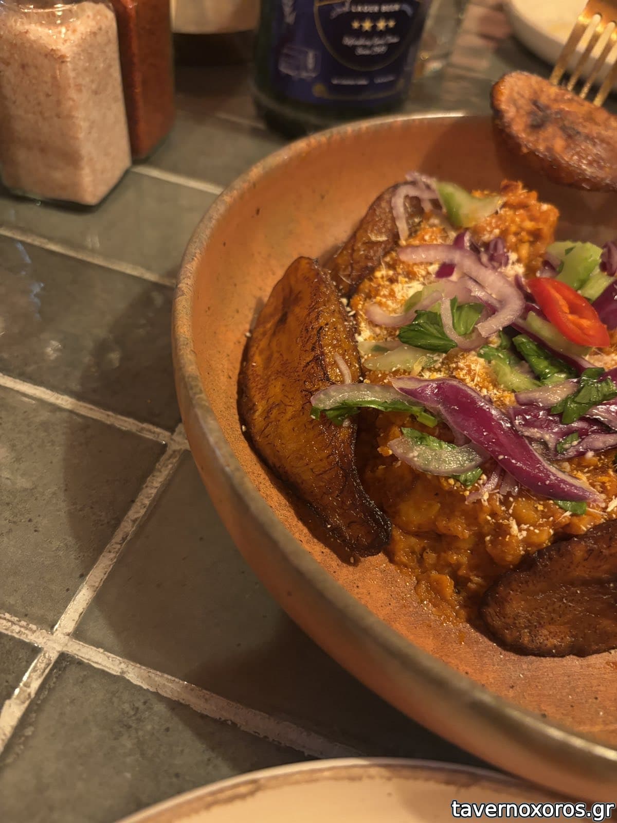 Red red (καλό, τα peas θυμίζουν ρεβύθια και τα plantains τηγανητή μπανάνα)