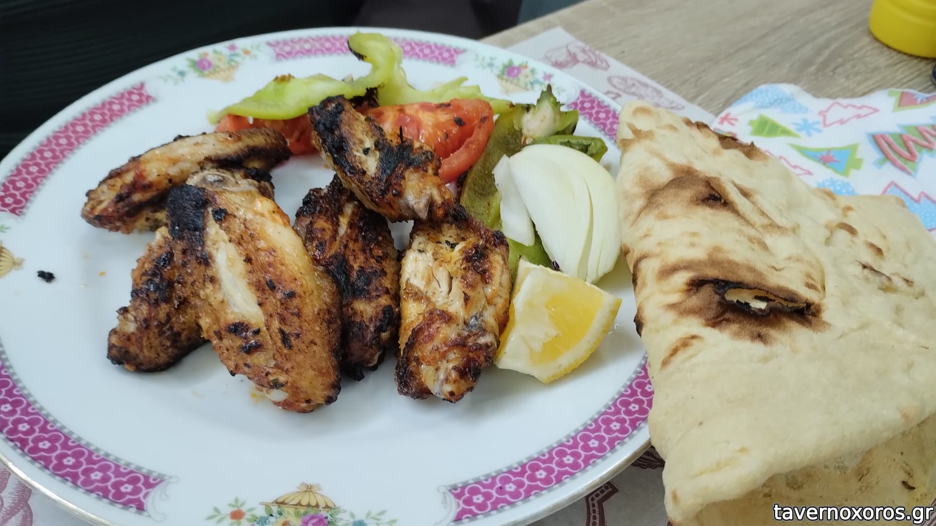 Μερίδα κοτόπουλο (στη συνεννόηση έδειξε μπούτι ή σουβλάκι. Τεσπα)