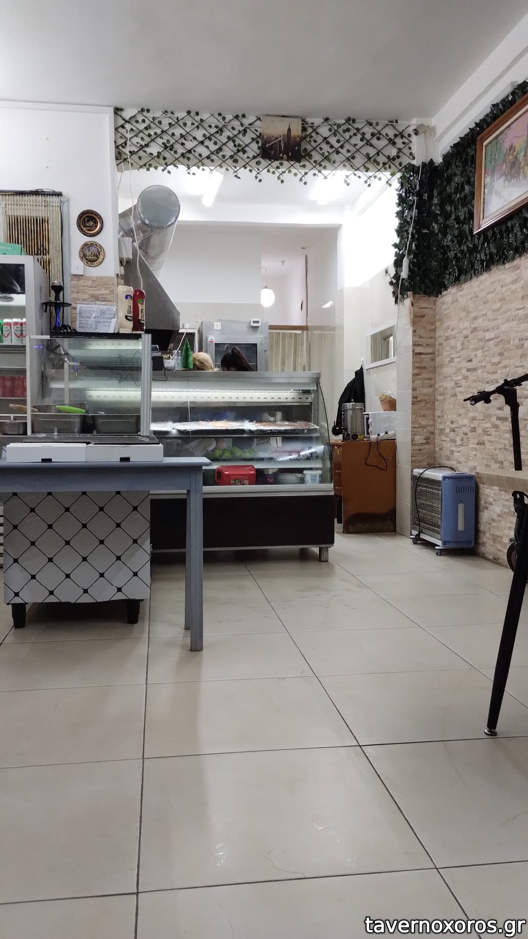 Ο εσωτερικός χώρος αφιλόξενος, όχι μόνο λόγω του έντονου φωτός και της ψυχρής διακόσμησης αλλά και επειδή γεμίζει εύκολα με κάπνα όταν πρωτοανάβουν την ψησταριά, οπότε κάθισα έξω.