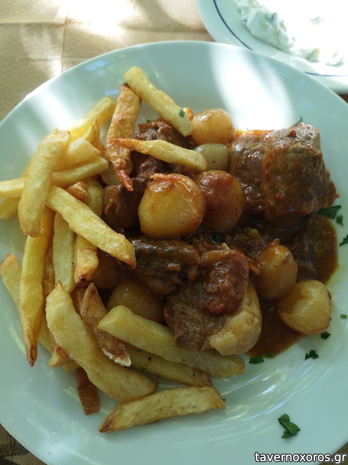 Προβατίνα με τηγανητές πατάτες (πολύ καλό, λουκουμίσιο)