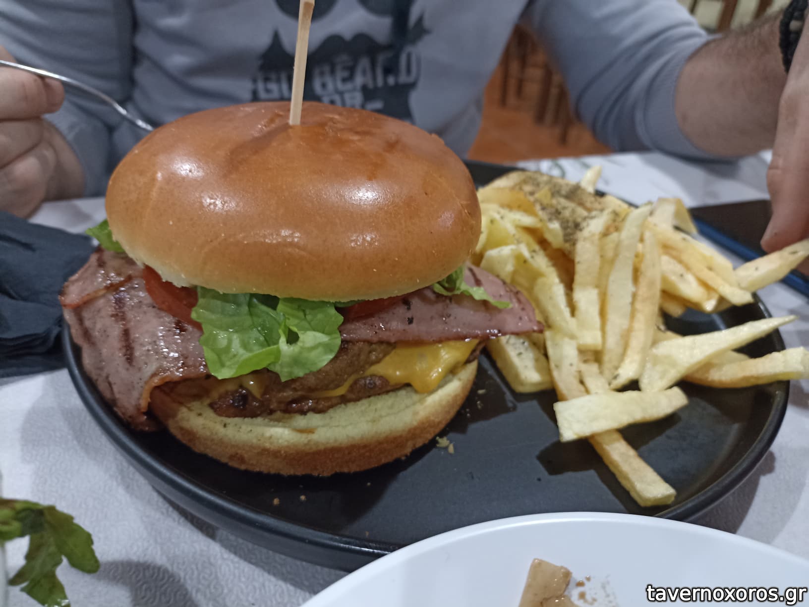 Burger (το double B, με διπλό μπιφτέκι, διπλό bacon, bun συμπαθητικό, συνολικά & μη αναμενόμενα πολύ οκ)