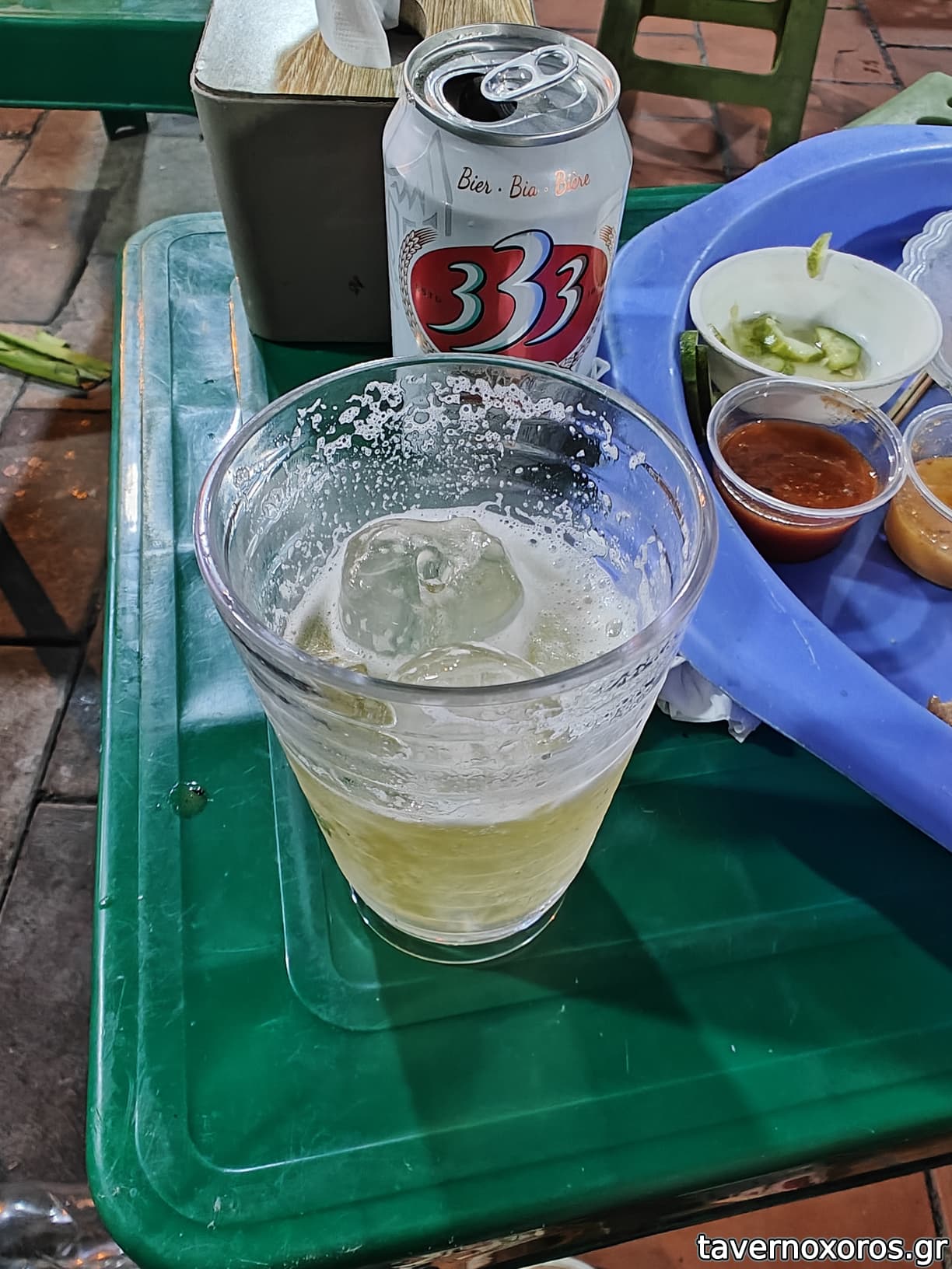 10 σουβλάκια, μπύρα και νερό, σύνολο κάτω από 5 ευρώ.
