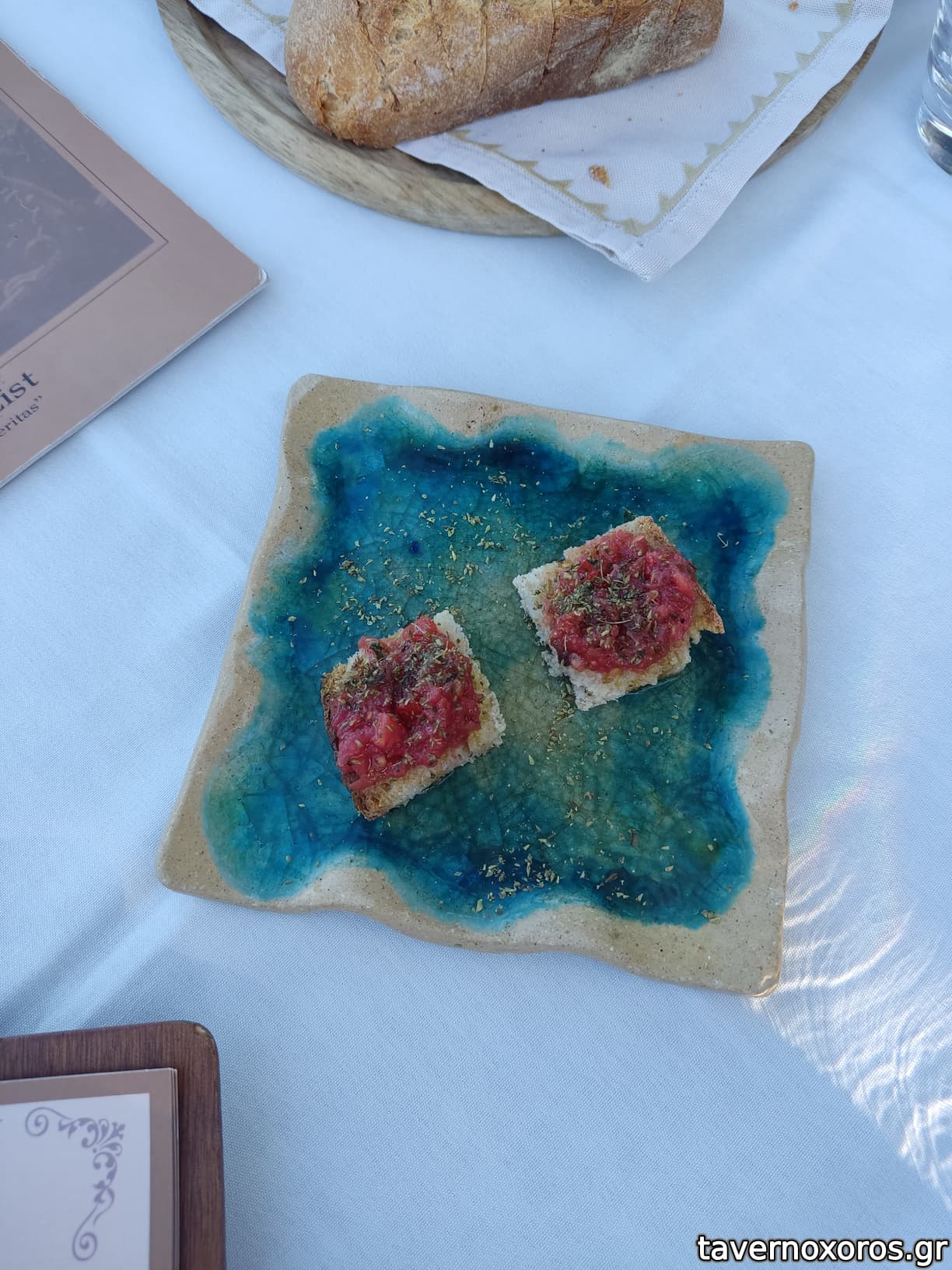 Κεραστηκε και ορεκτικό για καλωσόρισμα (ψωμί με σάλτσα και ελαιόλαδο) και στο τελος μας κέρασαν και λικέρ.