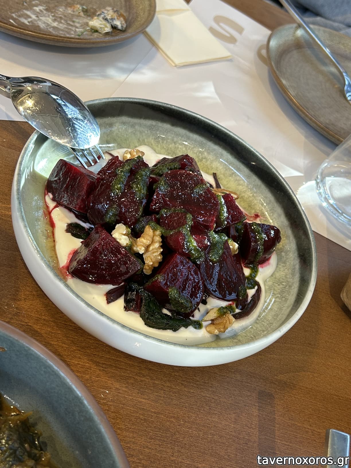 Επίσκεψη μεσημέρι Κυριακής. Λαϊκό προσκύνημα, οικογένειες και παρέες. Περιέργως ενώ τα επίπεδα ήχου της μουσικής ήταν χαμηλά, ο λλλλαος φώναζε σα να μην υπάρχει αύριο. Όμορφο περιβάλλον ευγενικό σέρβις. Σχεδόν ότι φάγαμε ήταν σε πολύ καλό επίπεδο (κότσι Χιουνκαρ , σαλάτα χόρτα και πατατοσαλάτα) ενώ υπήρχε μια μεγάλη (για εμένα) γευστική αστοχία Στο κοκκινιστό Με τραχανά όπου έβαλαν το κοκκινιστό μοσχάρι, πάνω σε τραχανά ντομάτας (η ντομάτα της ντομάτας, ω ντομάτα). Αν είχαν επιλέξει ως βάση έναν ξινό τραχανά, θα έσωζαν Το πιάτο. Δυνατή wine list για όλες τις τσέπες